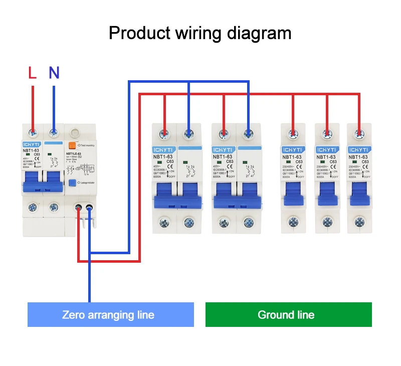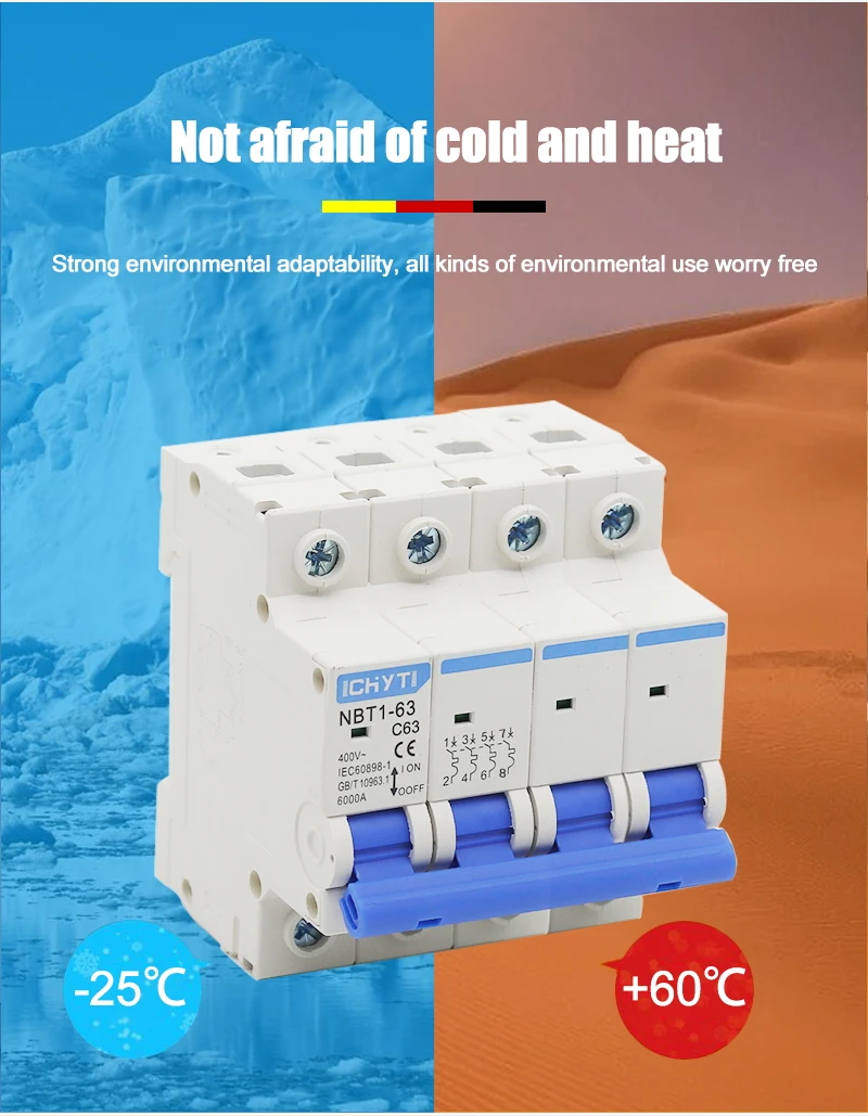 Бытовой миниатюрный автоматический выключатель типа C AC MCB NBT1-63 3P 6A 10A 16A 20A 25A 32A 40A 50A 63A