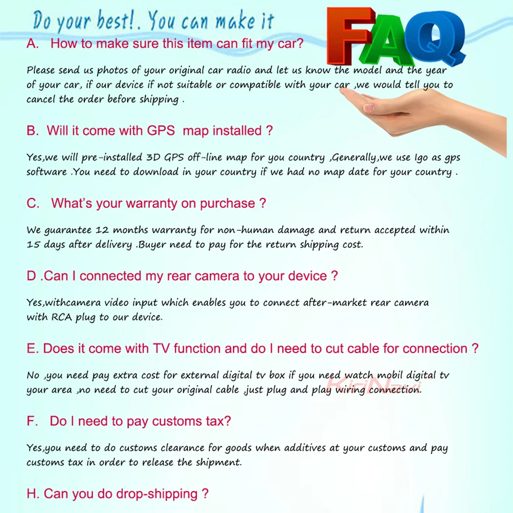 О: часто просим прислать нам фотографии вашего оригинального автомобильного радио и сообщить нам модель и год вашего автомобиля, если наше устройство не подходит или Совместимо с вашим автомобилем, мы скажем вам отменить заказ перед отправкой. Вопрос ed