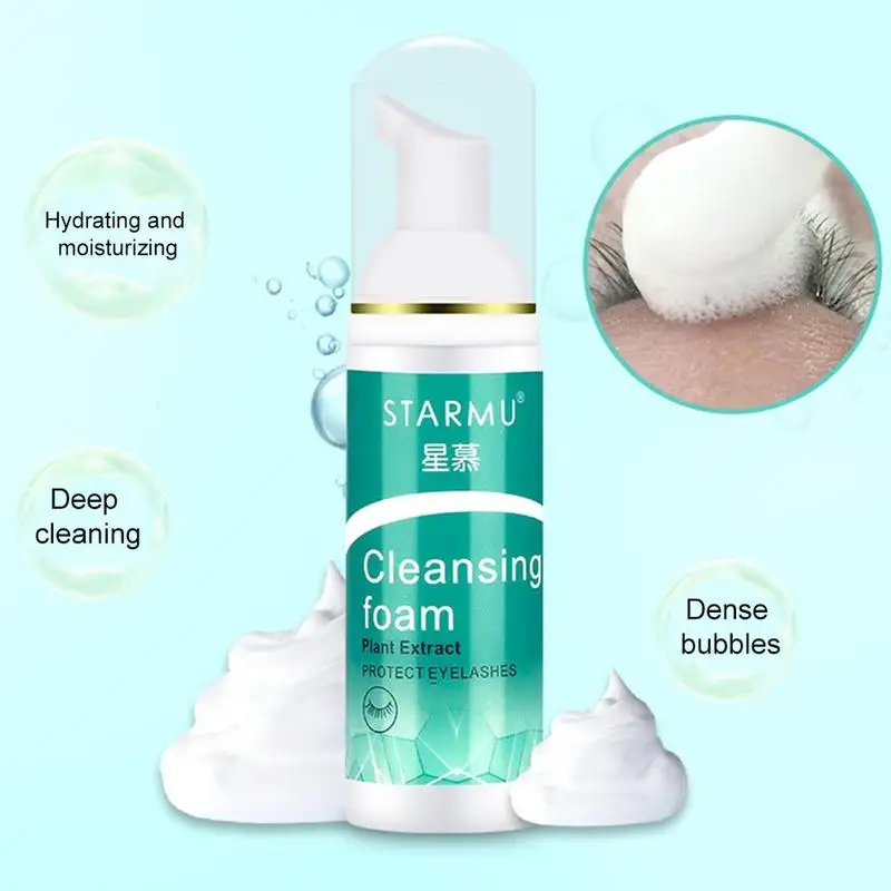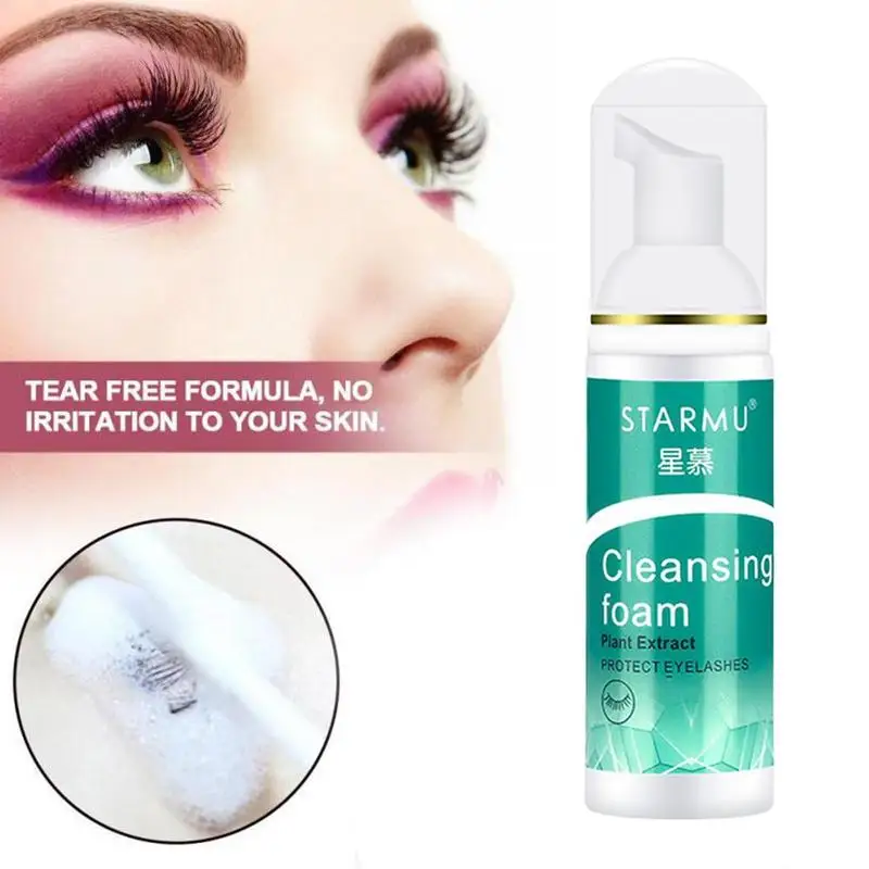 Перед чисткой нажмите на рот бутылки, чтобы выжать нужное количество пены на глаза