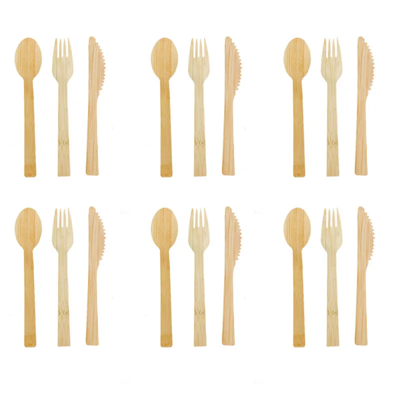 100% новый и высококачественный одноразовый бамбуковый набор столовых приборов, ложка, вилка, набор ножей