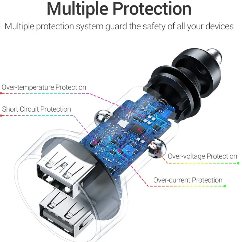 Автомобильное зарядное устройство Tongdaytech с двумя USB разъемами 24 Вт 4.8A, металлическое быстрое зарядное устройство USB, цифровой дисплей, автомобильный зарядный адаптер для iPhone Xiaomi