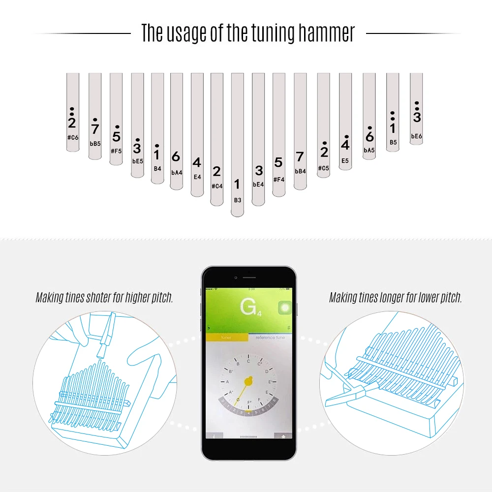 Легко играть, просто держа его в руках и выщипывая зубчики пальцами, чтобы создать четкие и мелодичные звуки; И поставляется с музыкальной книгой и наклейками для быстрого обучения и легкой игры.