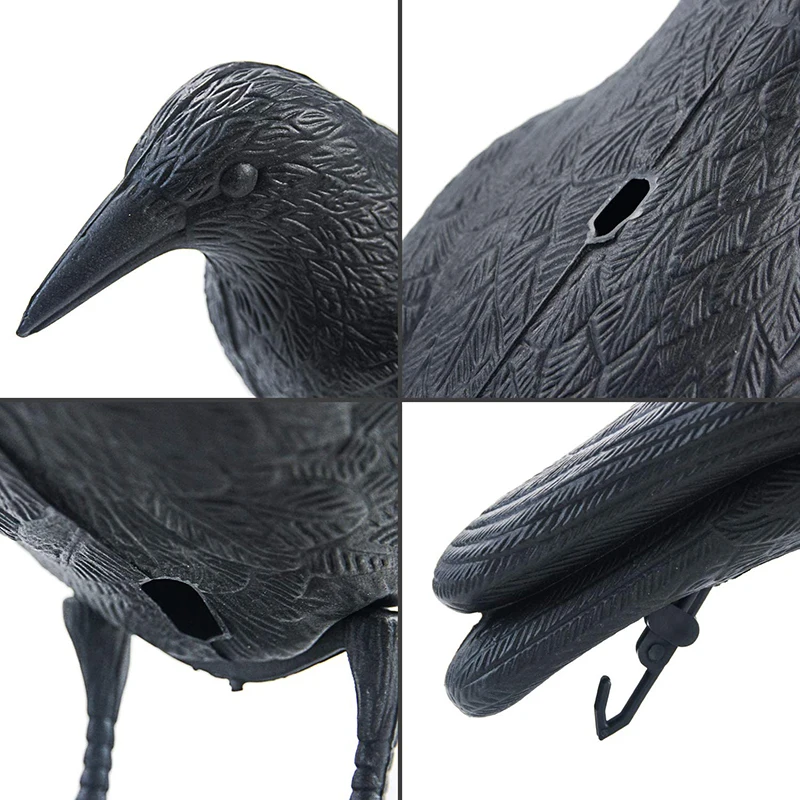 Поддельная ворона-приманка сделана из PE материала, прочный и надежный, водонепроницаемый и прочный.