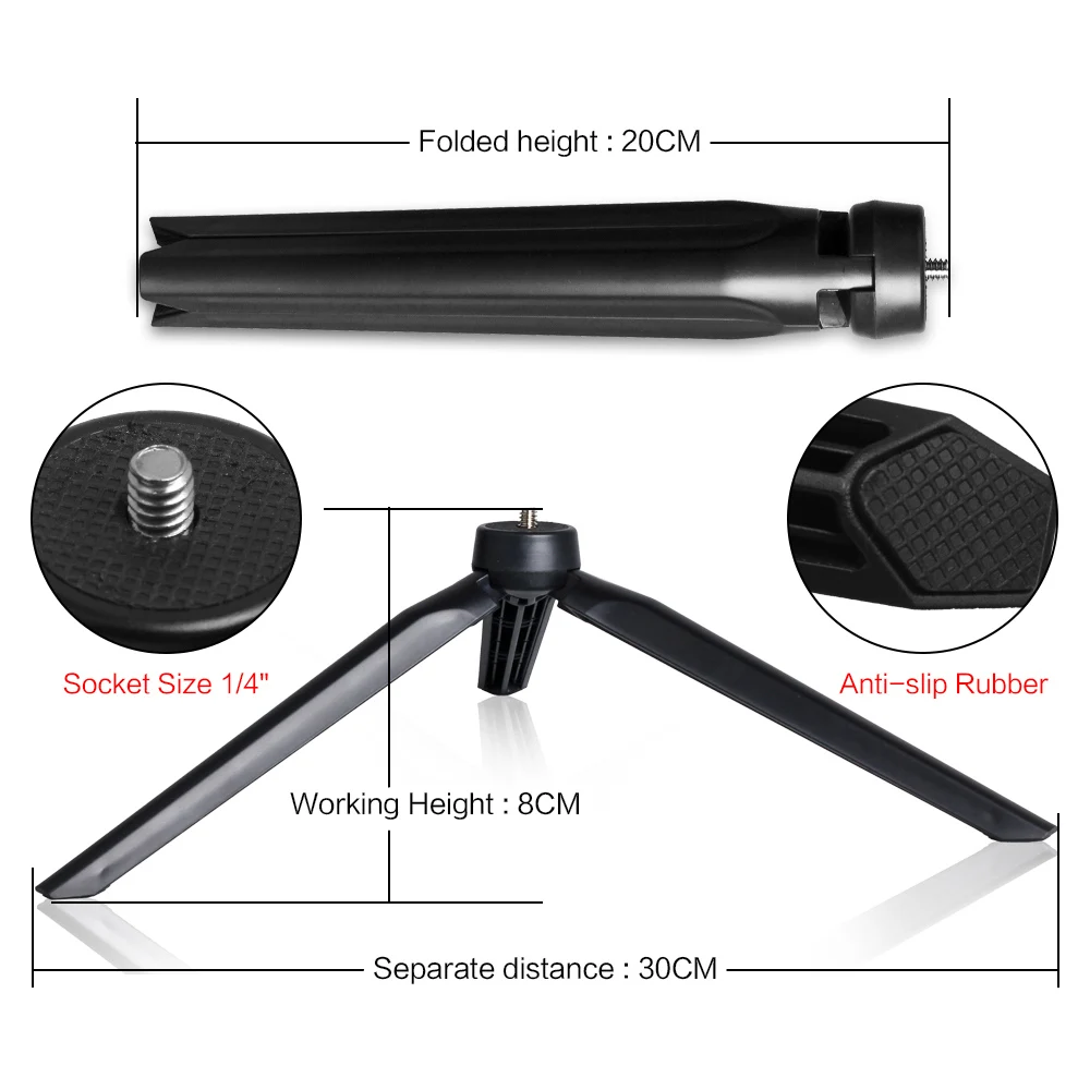 Adjustable Tripod Stand: Extendable tripod , just lock it at desired length for your preferred use, you can stand it on the floor or just put onto your table for your convenience.