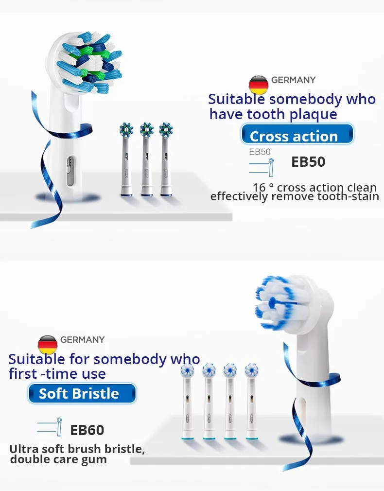 Oral B электрическая зубная щетка головки с мягкой щетиной 3D белая прецизионная чистая Крестовая зубная нить действие Замена зубная щетка головка