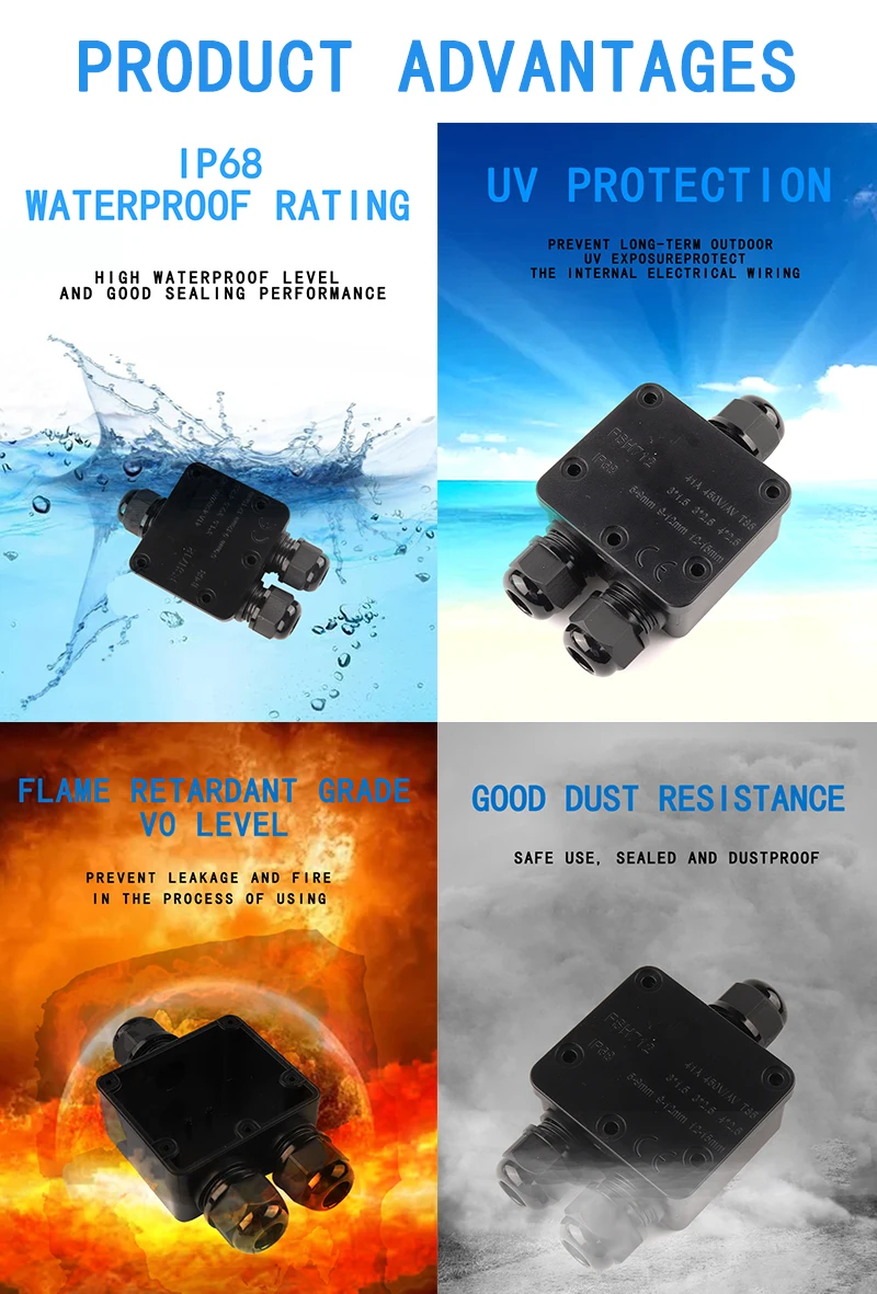 2 способа IP68 41A/450V внешняя водонепроницаемая кабельная электрическая распределительная коробка с клеммой для наружного Led светильник аксессуары для проводки