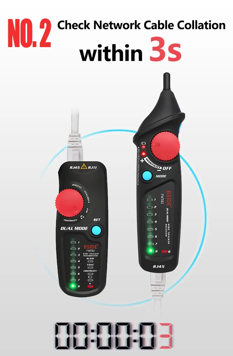 -Отличный проводный трекер, разработанный Bside, производительность защиты от помех лучше, чем большинство продуктов. Звук громкий и не шумит при отслеживании проводов, что может помочь вам быстро найти целевой сетевой кабель.
