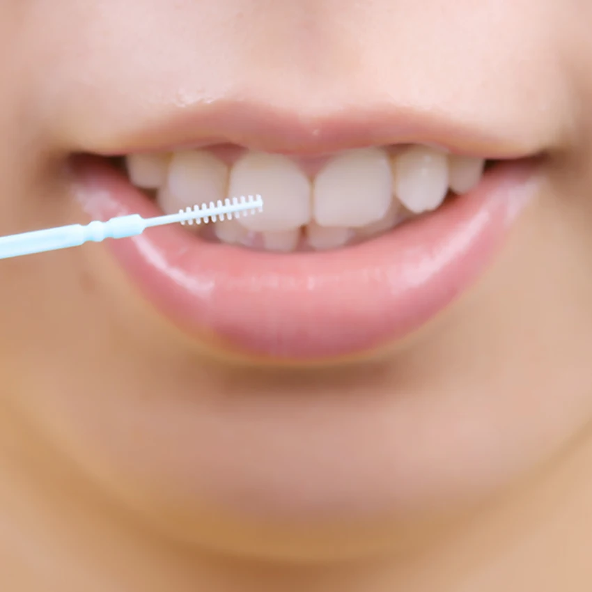 Может использоваться в качестве межзубной щетки или зубочистки.