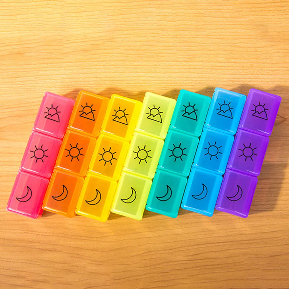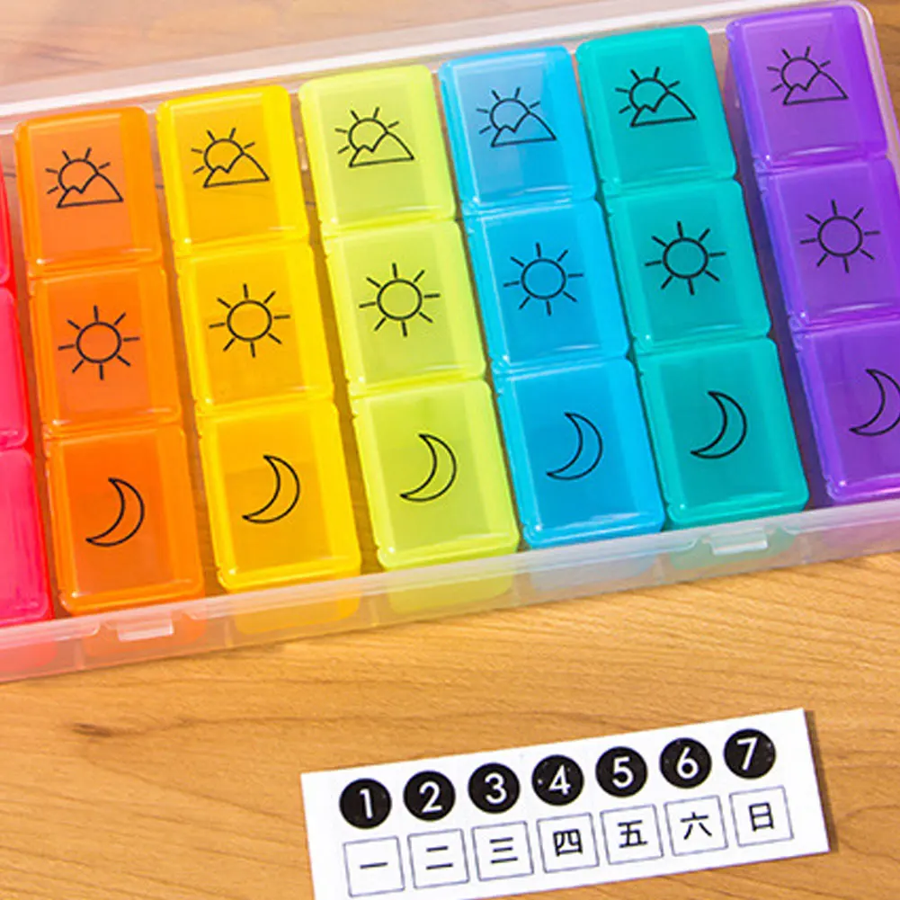 Контейнер для таблеток Rainbow с 21 отделением, семидневный контейнер для хранения лекарств