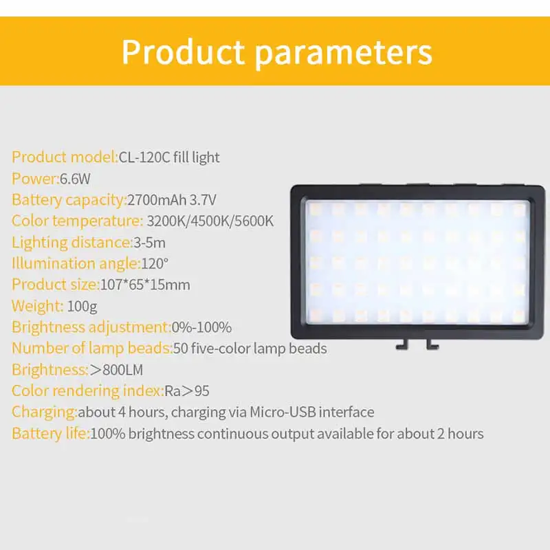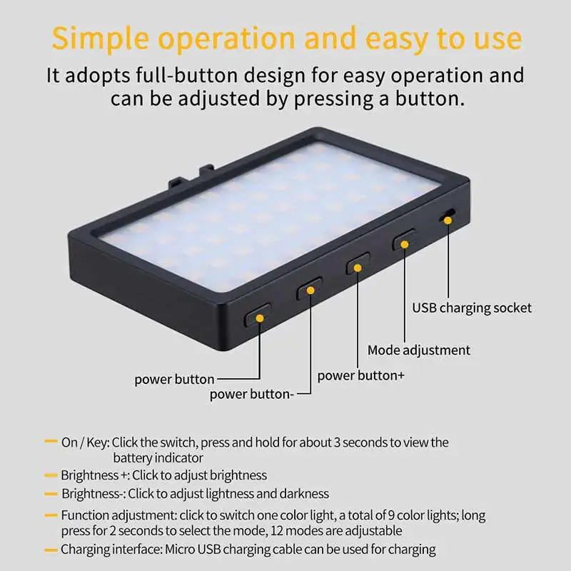 -Компактный дизайн, легко взять в карман, светильник для фотосъемки телефона или камеры DSLR.