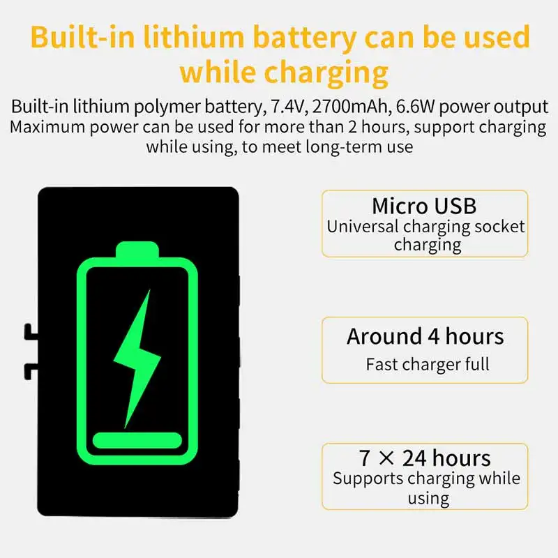 -Встроенный аккумулятор: 2700 мАч/3,7 V