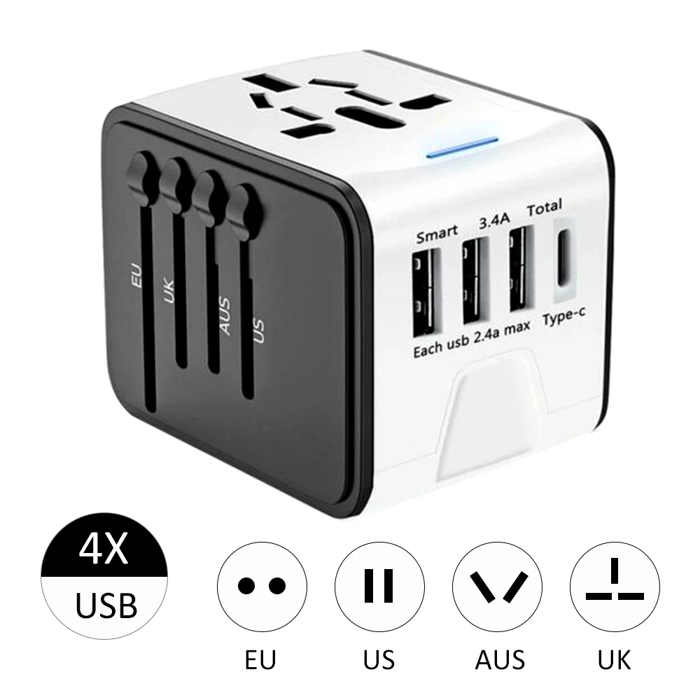 This Universal Adapter has 4 USB Ports. The input voltage of the USB is 100-240VAC, means you can use it around the world to Charge multiple USB devices at the same time, like your cell phon, MP3/4/5 and Camera etc.
