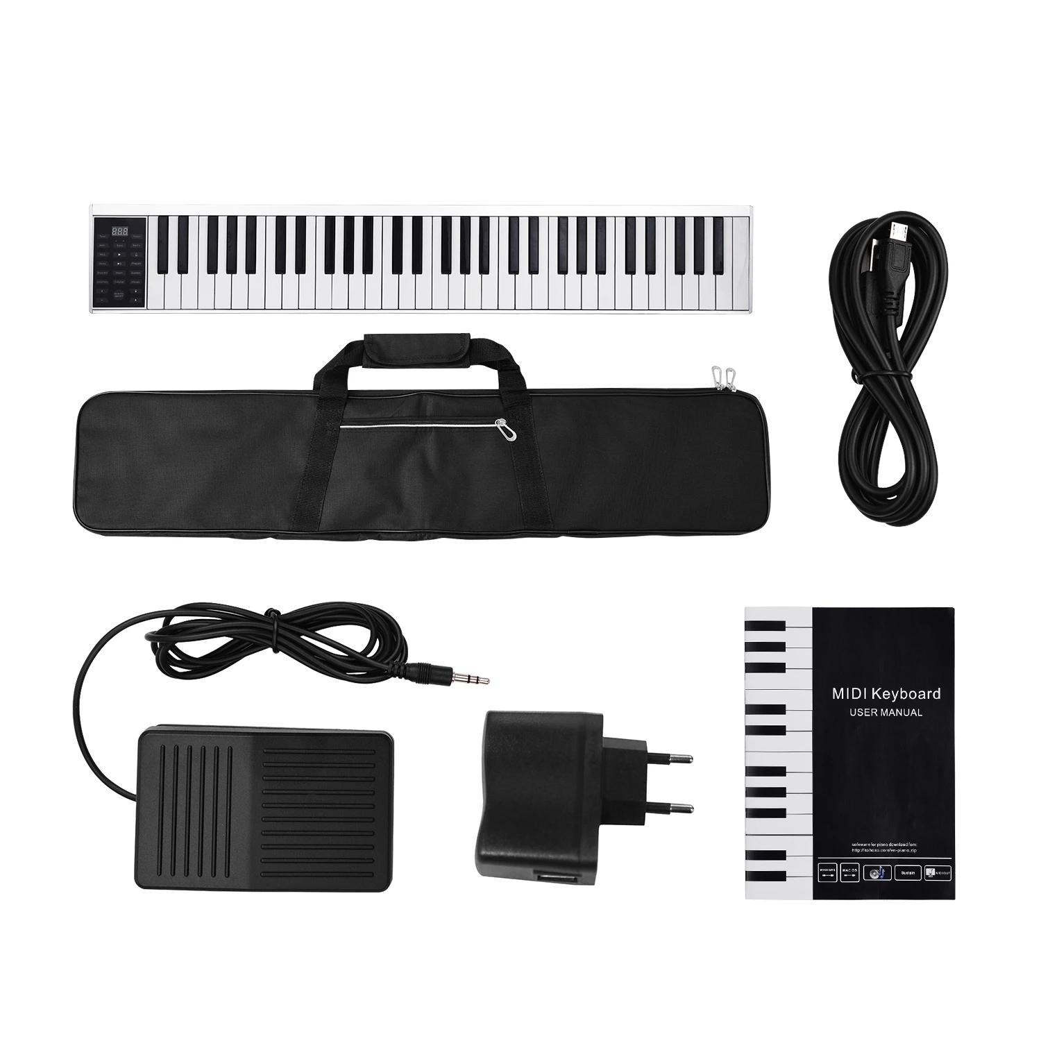Портативная электронная фортепианная клавиатура: портативная фортепианная клавиатура имеет 128 тонов, 128 ритмов, 14 демонстрационных песен, с аккордом, поддержка (с педалью поддержки), метроном, записью, воспроизведением, учебником, барабанный набор и фортепианные игры функции.