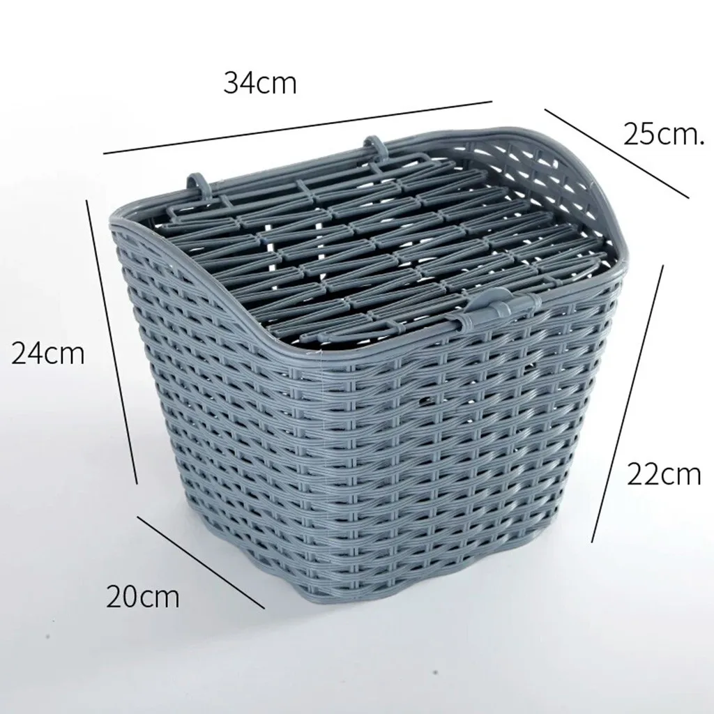 Наши велосипедные корзины сплетены из прочного пластика, чтобы оставаться сильным днем и днем.Велосипедная корзина отличается водонепроницаемостью, устойчивостью к ультрафиолетовому излучению, защитой от дождя, отлично подходит для улицы.Когда эта корзина установлена правильно, она не будет наклоняться, стабильная и безопасная.Применение: корзина может быть прочно соединена с велосипедами для детей или взрослых.Большой емкости и с крышкой. В корзину можно положить книги, канцелярские принадлежности, школьные сумки и продукты питания. Это хороший контейнер, и вы можете взять его на пляж или бассейн.