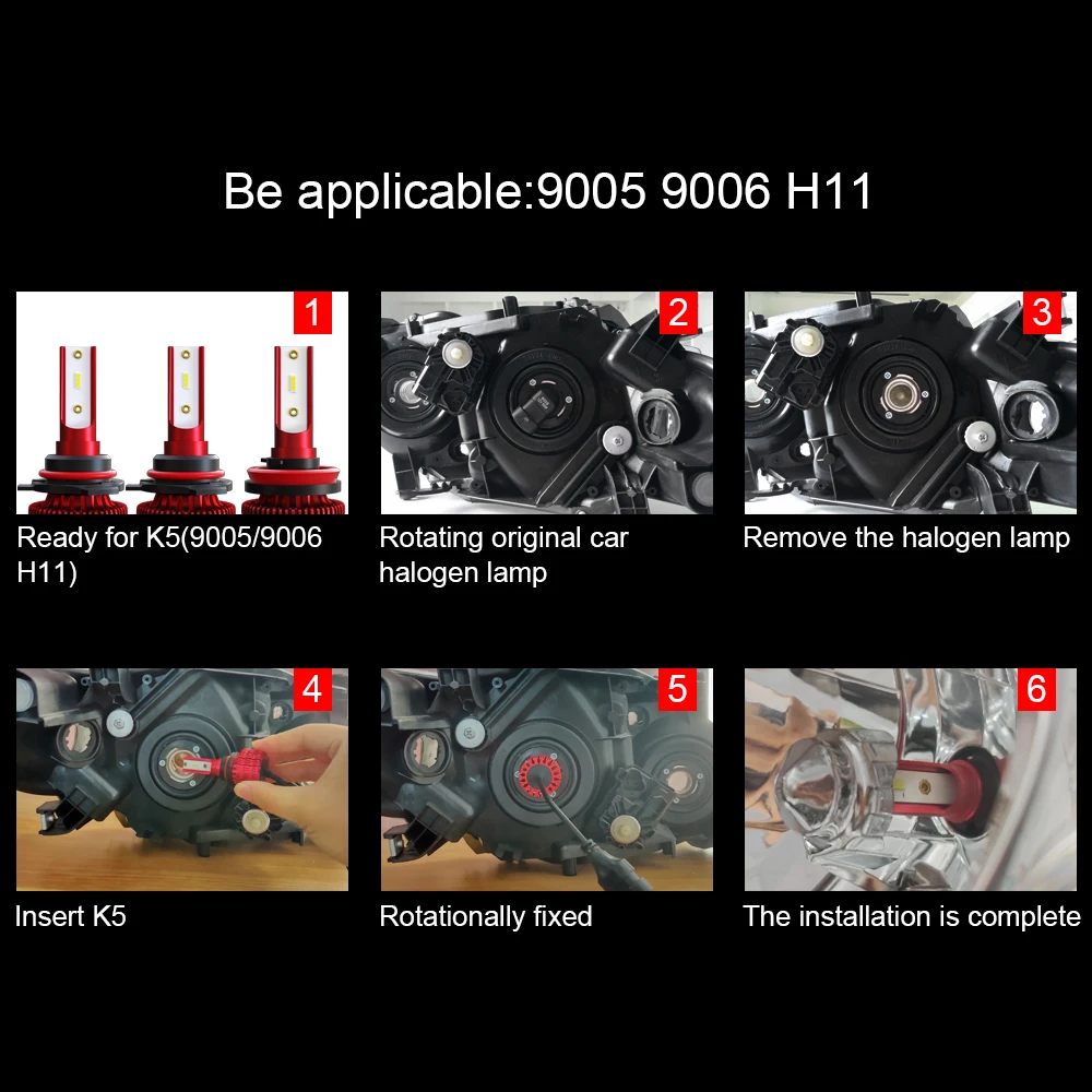 Простая установка: головной светильник-лампочка как головной светильник ближнего света или противотуманный светильник. Может быть установлен в 10 мин, просто подключи и играй, неразрушающая установка. Если лампа не работает после установки, пожалуйста, поверните вилку и повторите попытку снова, держите лампу плотно подключенной.
