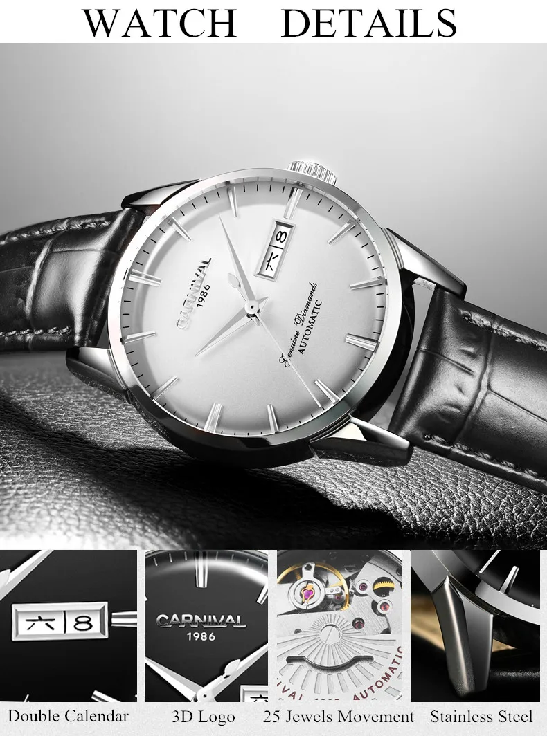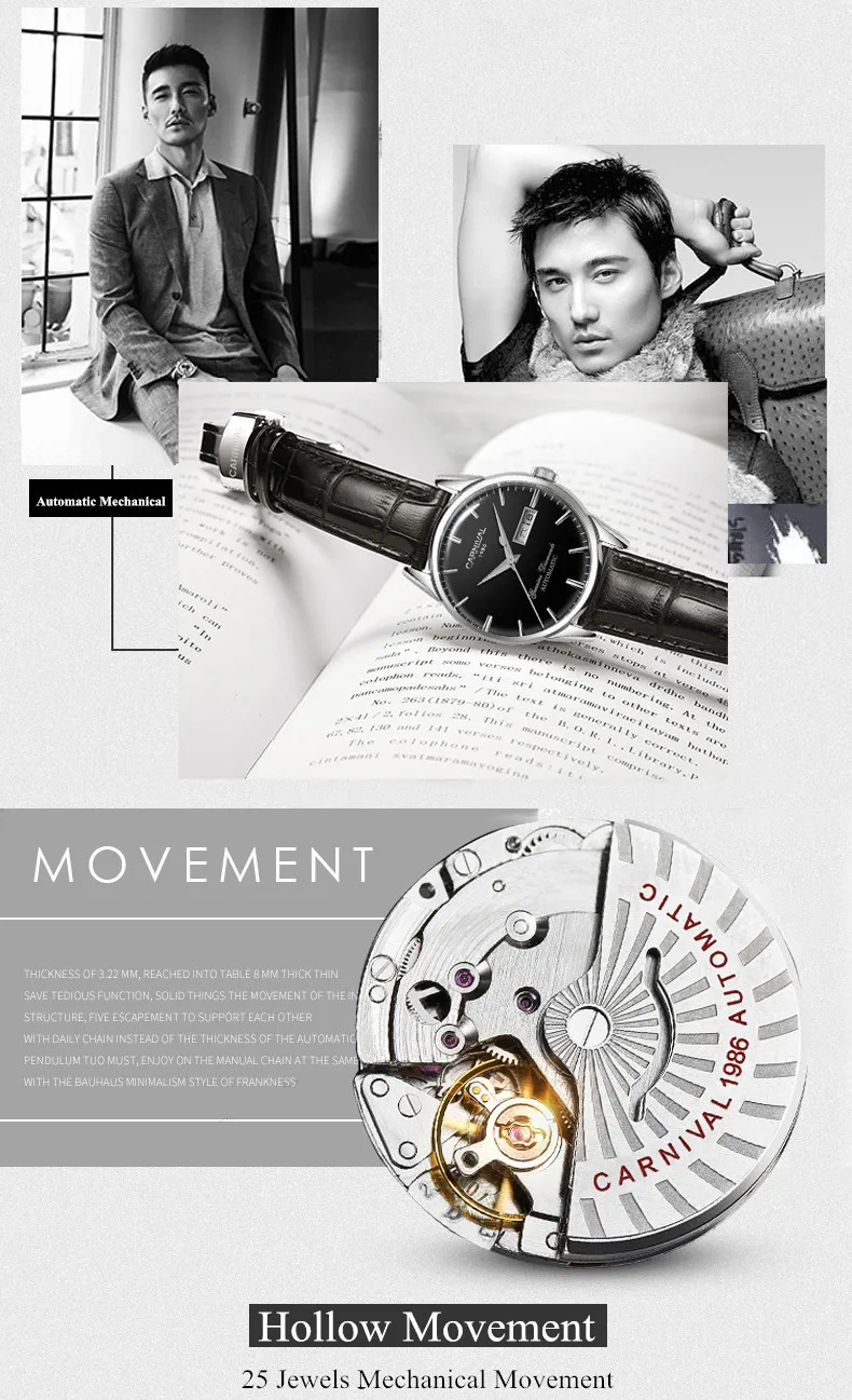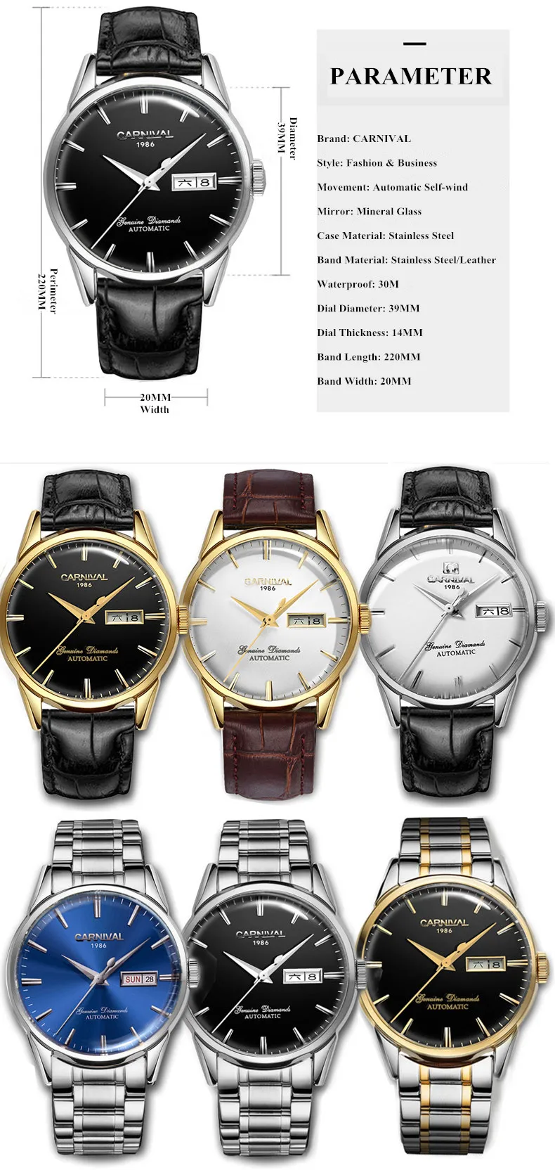 Часы мужские механические водонепроницаемые с автоподзаводом, 2021