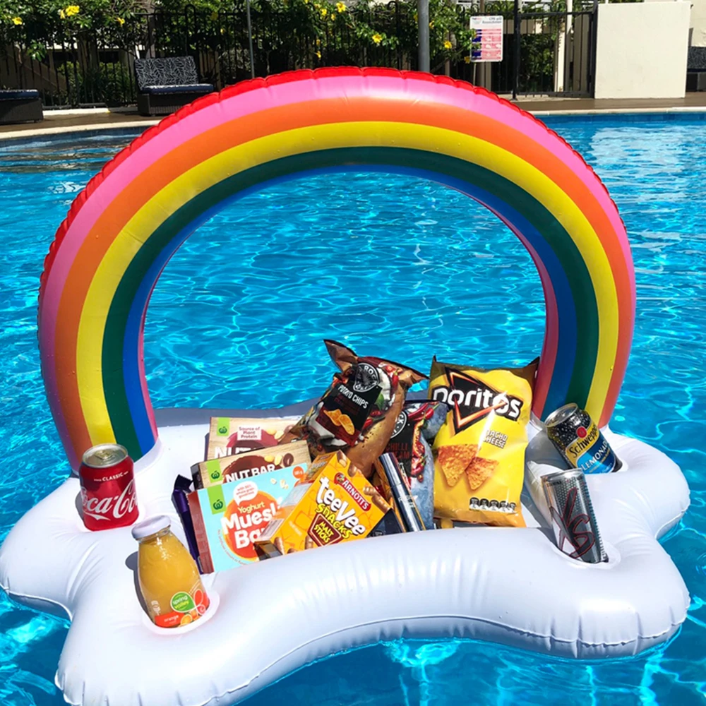 The swimming pool floating toy is made up of lovely clouds and beautiful rainbows, which is a perfect complement to the swimming pool.