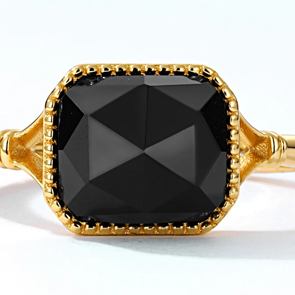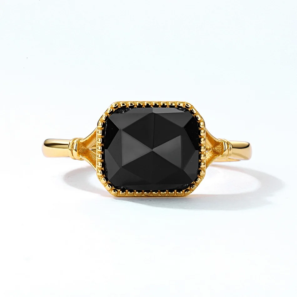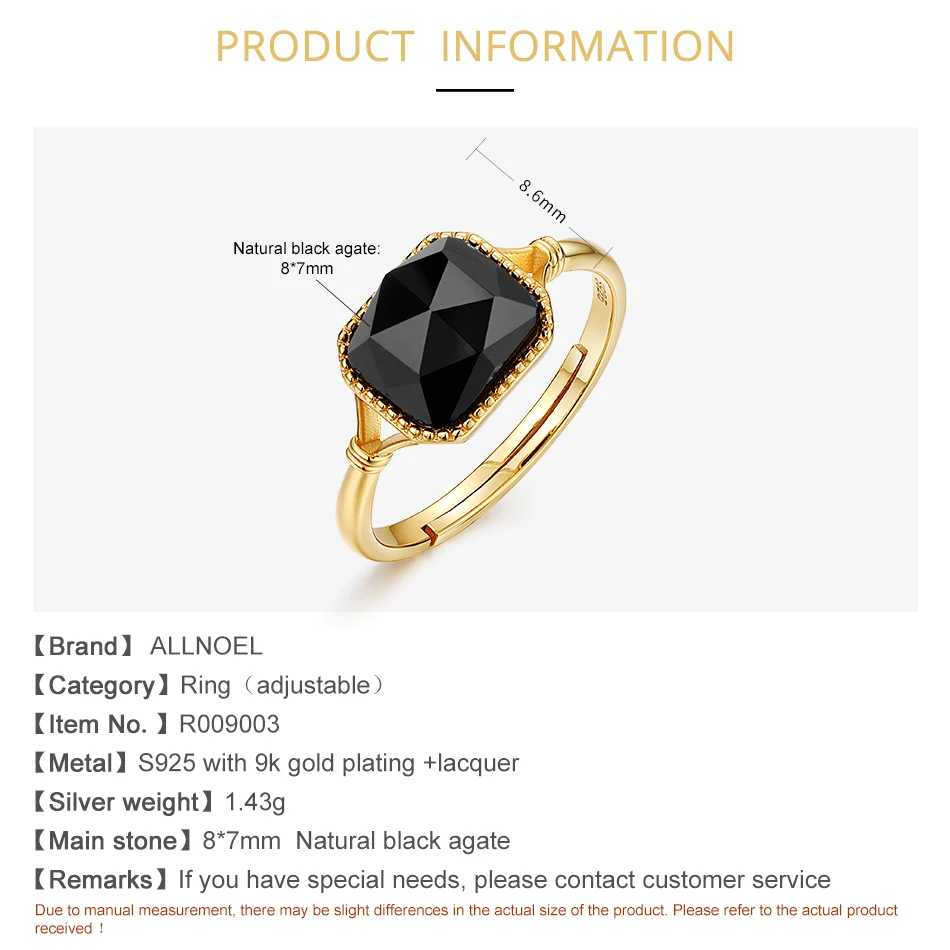 ALLNOEL кольцо из стерлингового серебра 925 пробы для женщин, натуральный черный агат, драгоценный камень, регулируемые кольца, позолота для женщин, хорошее ювелирное изделие