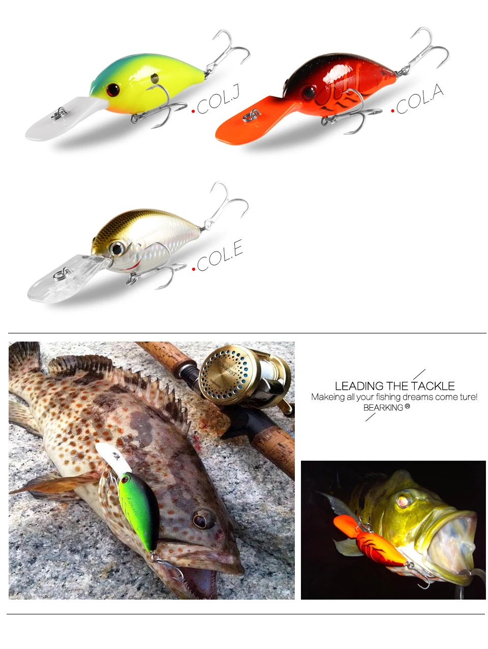 Gift:Each bait including one bearking fishing tackle stickers.