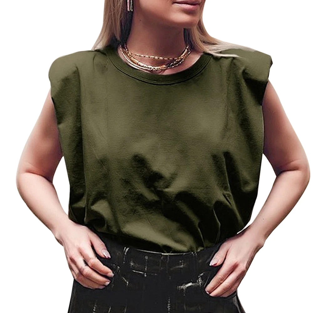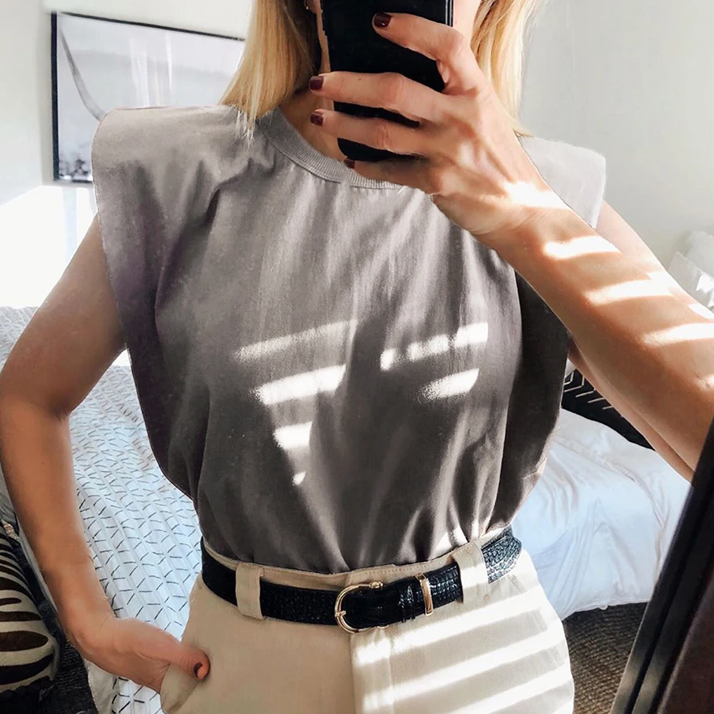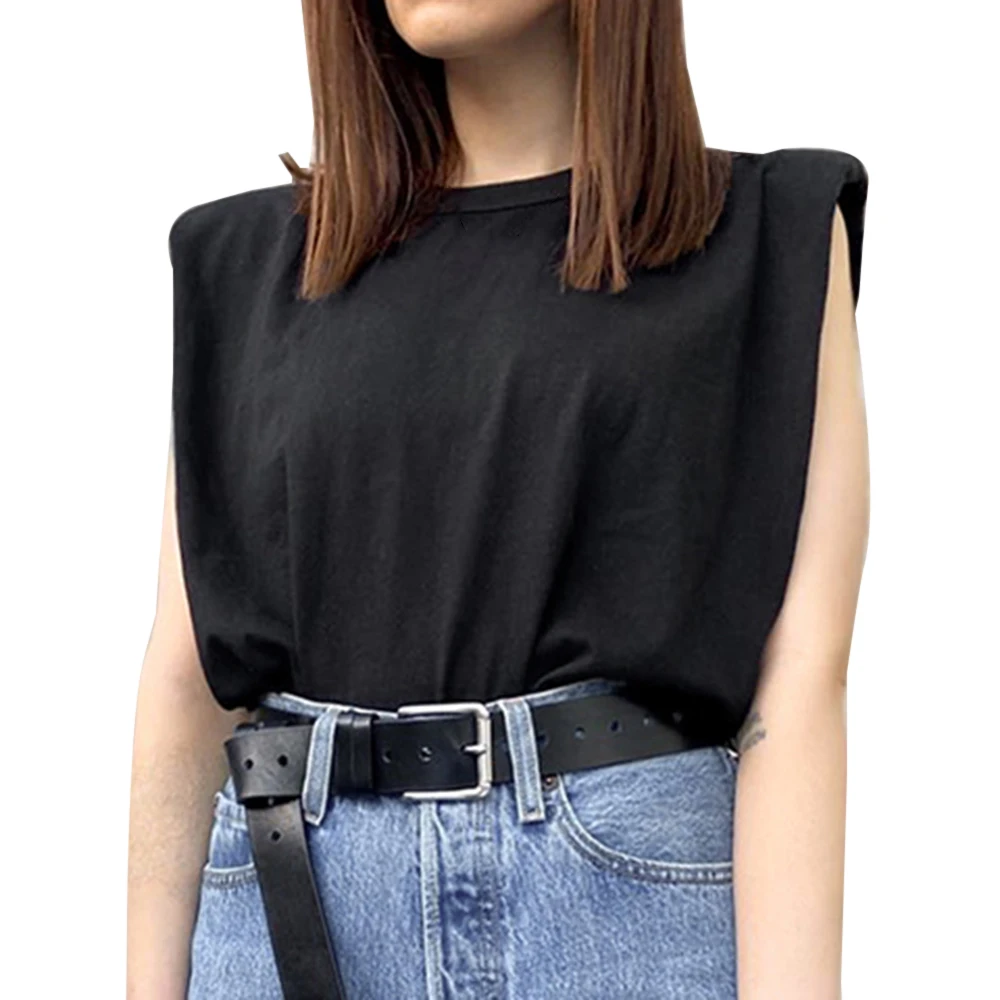 Женская хлопковая Футболка с круглым вырезом на плече в Корейском стиле, без рукавов, Однотонный женский жилет, новинка 2020, летний Повседневный свободный женский топ, одежда