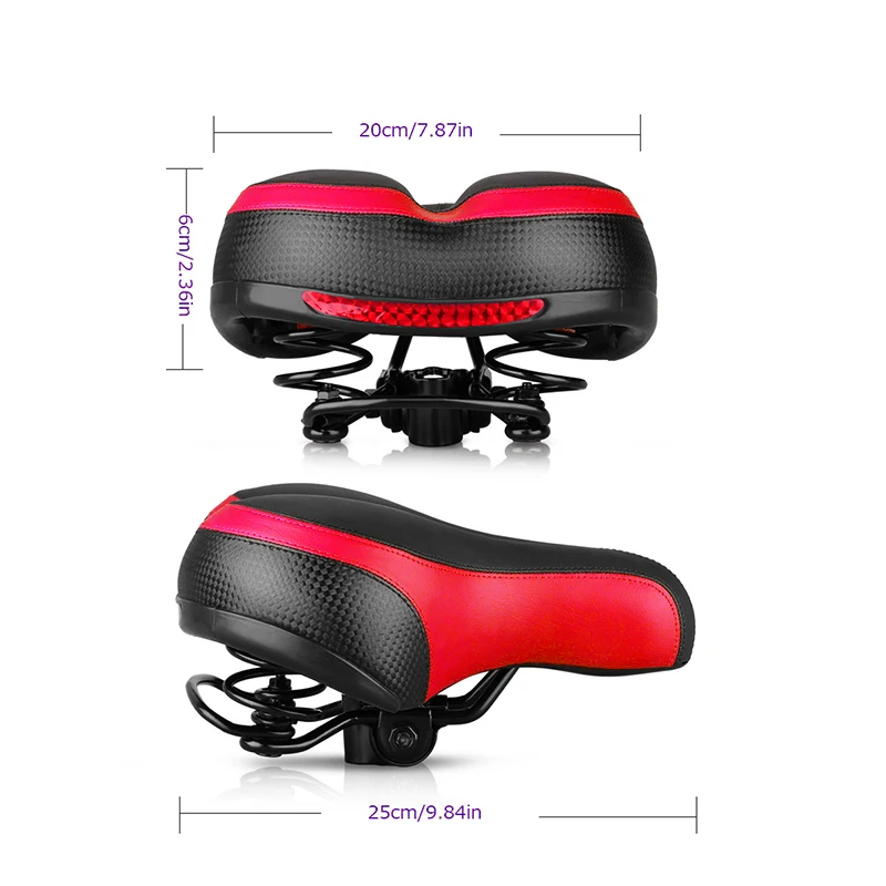 На задней части велосипедной подушки есть светоотражающая полоса, легко видимая ночью с отражением на светильник, повышающая безопасность во время ночной езды.