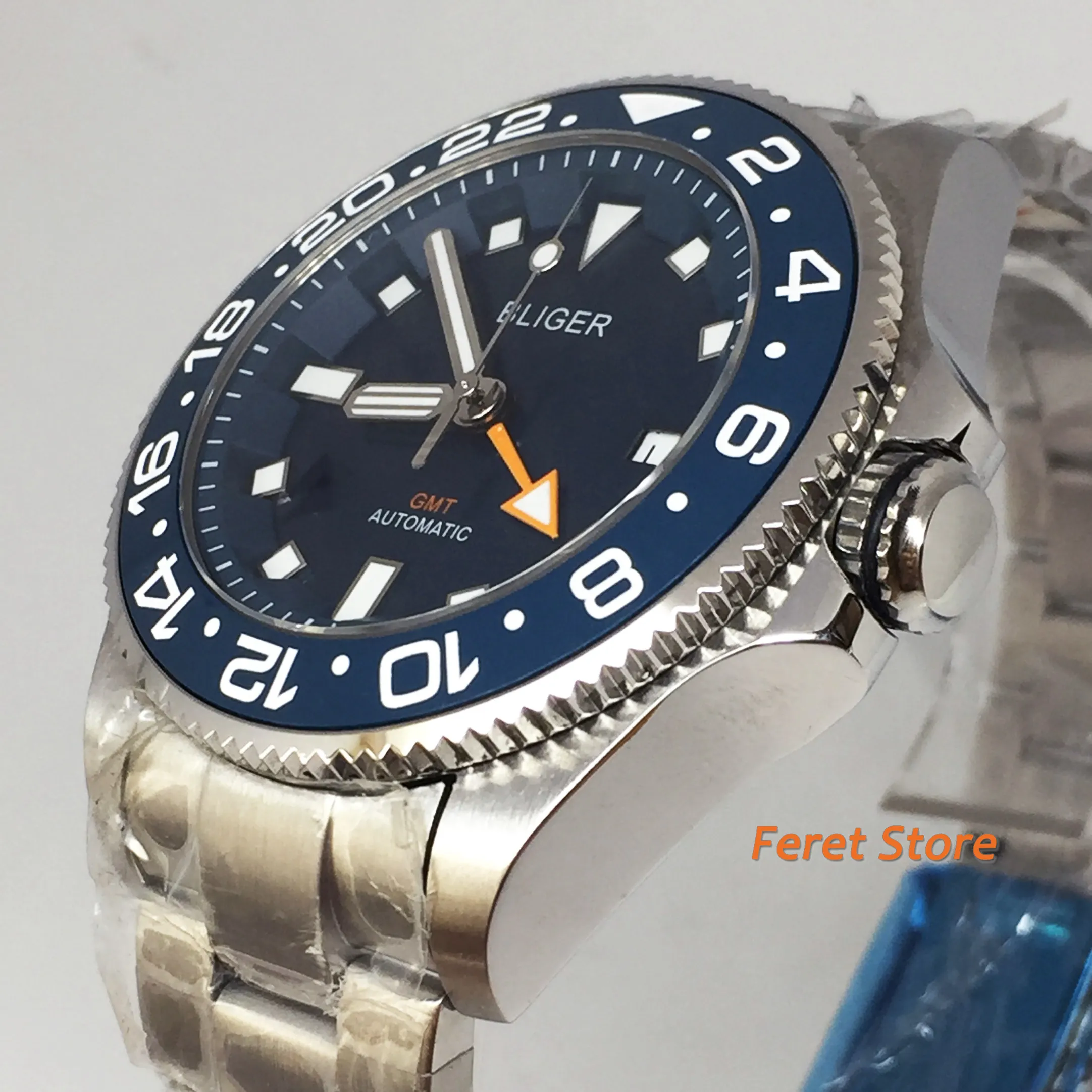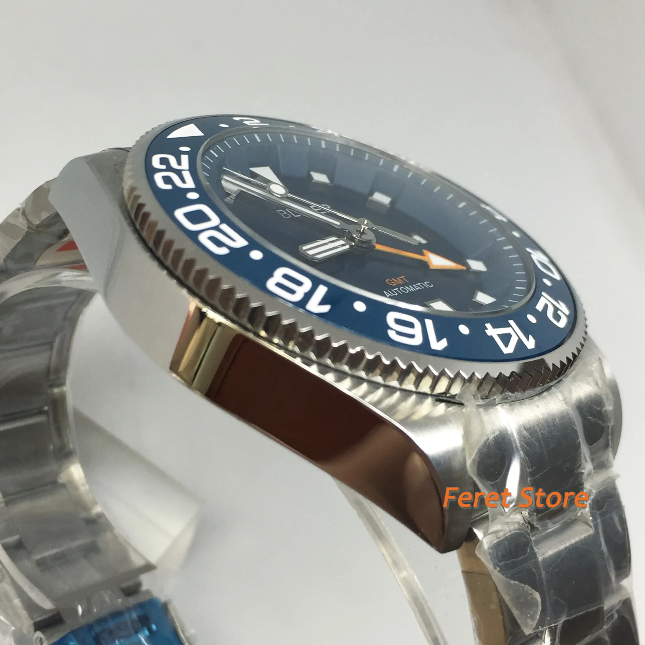 Механизм: автоматический механизм GMT (с автоподзаводом) Материал корпуса: твердый корпус из нержавеющей стали 316L Диаметр корпуса: 43 мм без короны Толщина корпуса: 16 мм Циферблат: Зеленый циферблат; Окошко даты в положении «3 часа» Ремешок: ремешок из нержавеющей стали шириной 21 мм Тип застежки: раскладная пряжка Стекло: сапфировое стекло Водонепроницаемость: 30 м