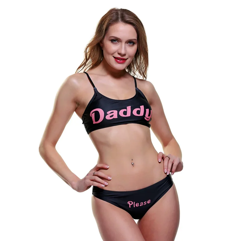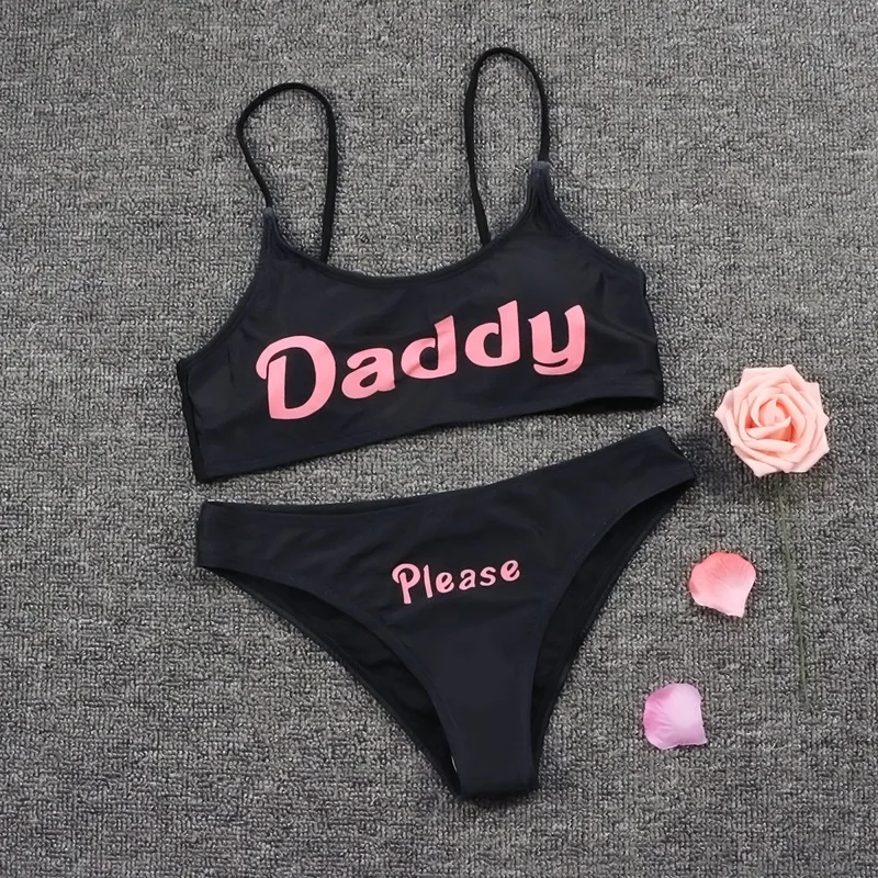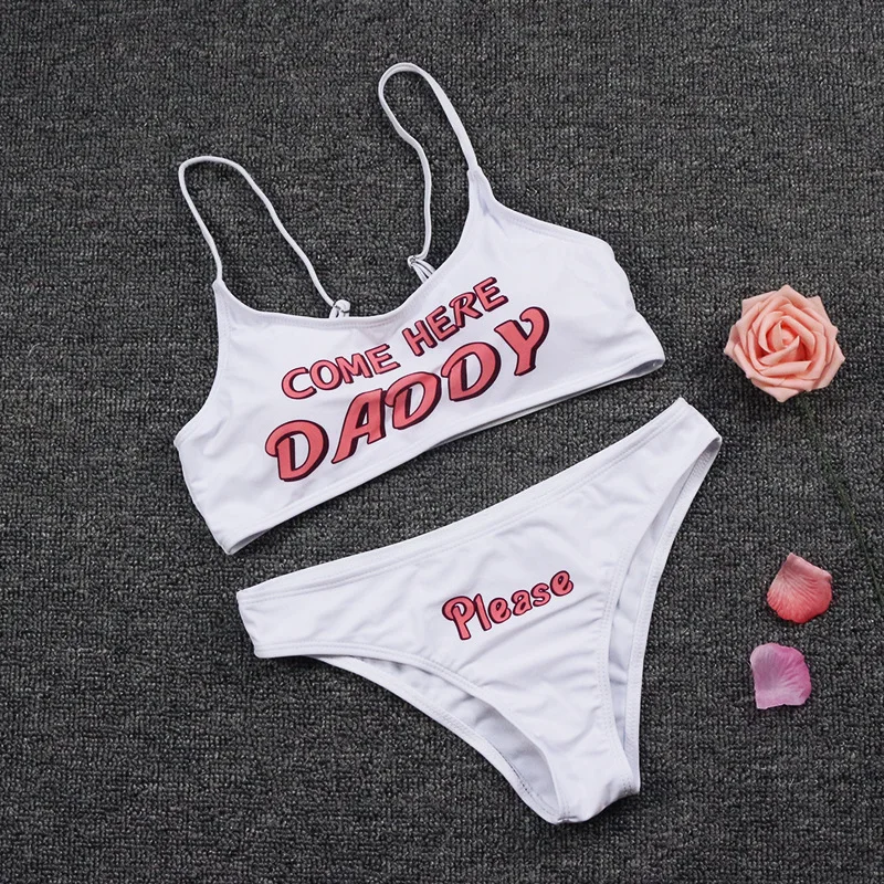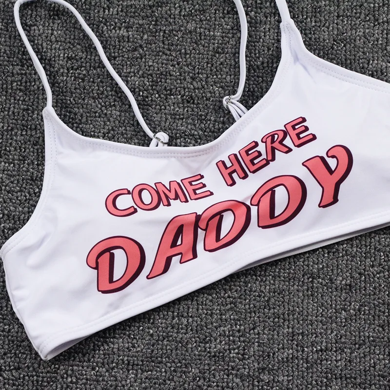 Two piece set New Fashion COME HERE DADDY Letter Print Tank Top Sexy Sleeveless Summer Harajuku Kawaii Cropped Feminino Bikini Fashion COME HERE DADDY Letter Print Tank Top Sexy Sleeveless Summer Harajuku Kawaii Cropped Feminino Tops&Panties