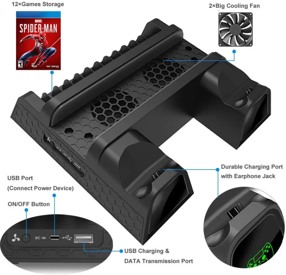 TЕго продукт предназначен для снижения температуры для PS4, PS4 Slim и PS4 Pro консоли и для зарядки контроллера PS4,
