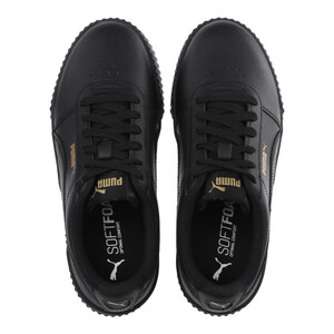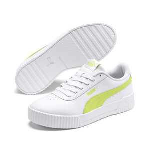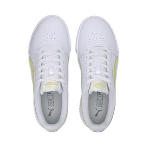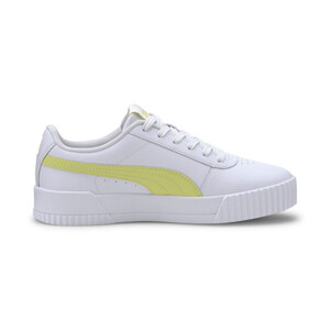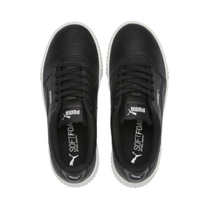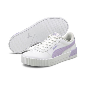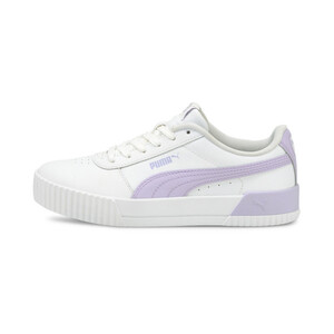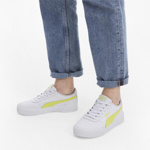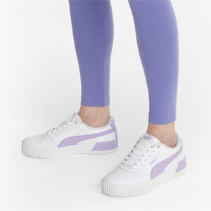 Дизайн этой модели вдохновлен стилем восьмидесятых. Кожаный верх украшают перфорированная союзка и фирменные полоски PUMA Formstrip. Слегка завышенная платформа, текстурированные мысок и пятка делают кеды Carina L эффектными. Брендинг выступает как завершающий штрих.