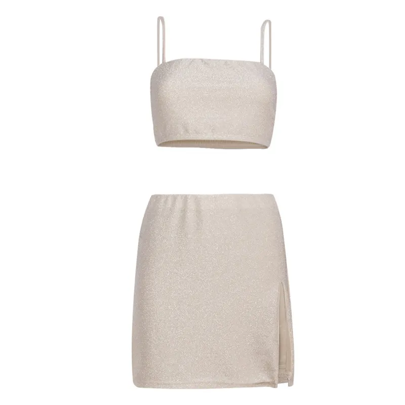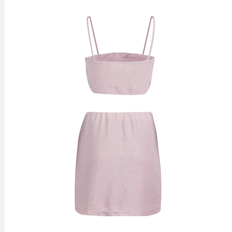 GAOKE, сексуальная юбка на тонких бретельках, комплект из 2 предметов, 2020, летние женские модные неоновые черные золотые однотонные вечерние костюмы в уличном стиле