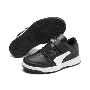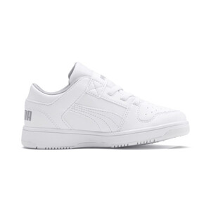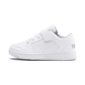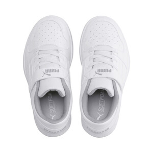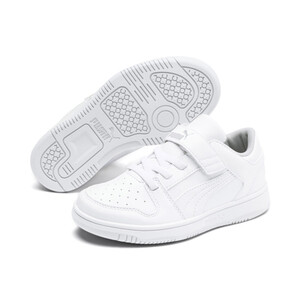 «Баскетбольные» детские кеды Pm Rebound Layup Lo SL V PS – это сочетание ретро-элементов и футуристического стиля. Модель отличают лаконичный силуэт, перфорированный верх и фирменные полоски PUMA Formstrip по бокам.