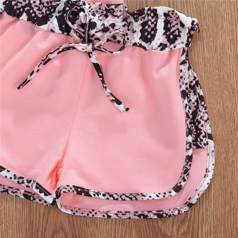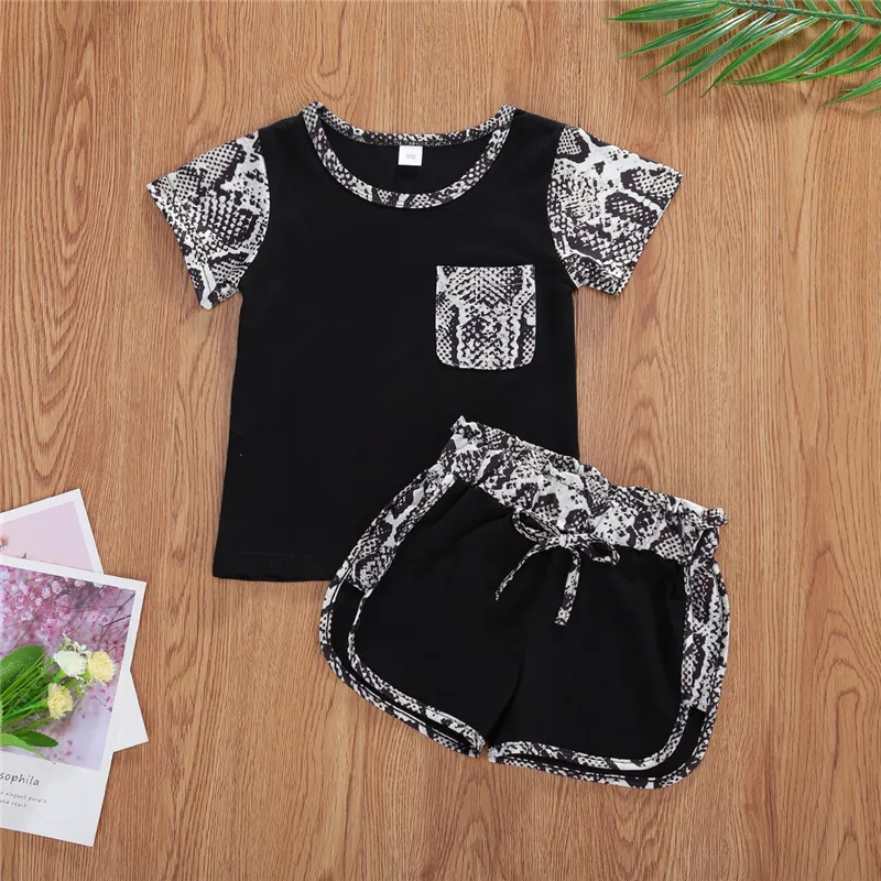 Детский костюм из 2 предметов для мальчиков, одежда с принтом змеиной кожи Милая футболка с короткими рукавами и круглым вырезом для маленьких девочек + шорты, штаны черный/розовый От 1 до 6 лет
