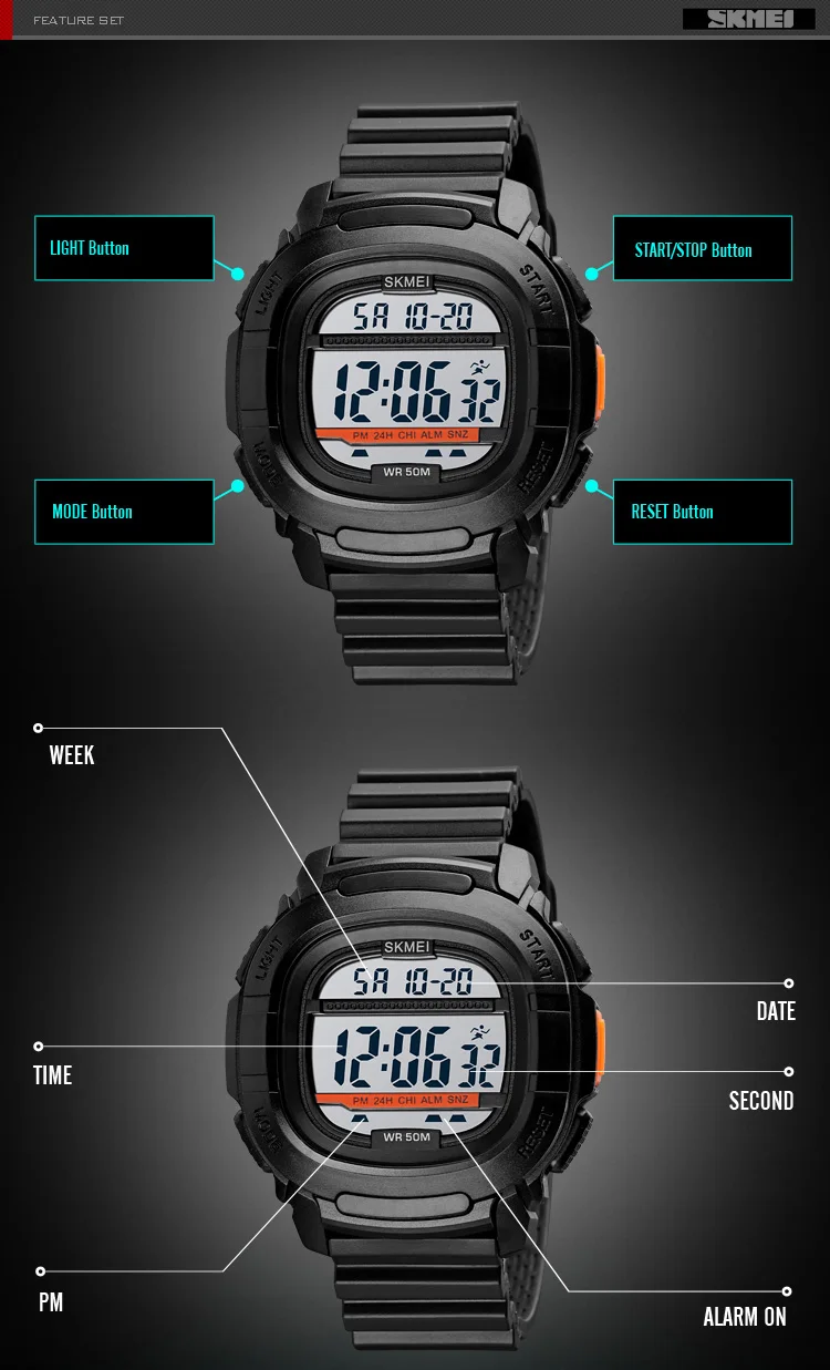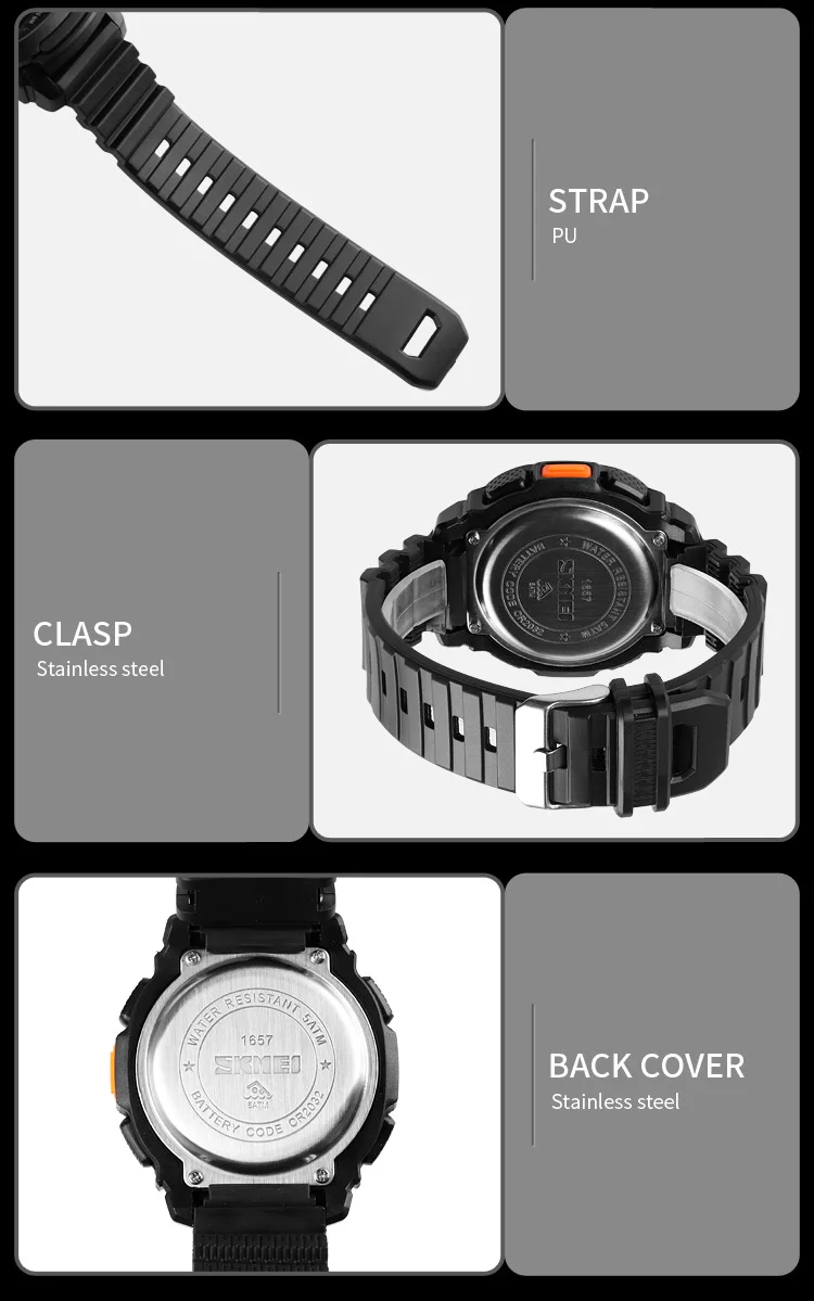 SKMEI 1657 светодиодный дисплей цифровые военные спортивные часы Секундомер Мужские часы обратный отсчет мужские электронные часы Relogio Masculino