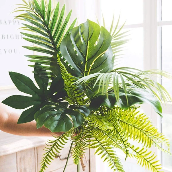 Богатый-включает в себя 12 больших и 12 средних и 24 пальмовых листьев клевера, 12 искусственных тропических листьев и стеблей (4 штуки в каждом стиле).