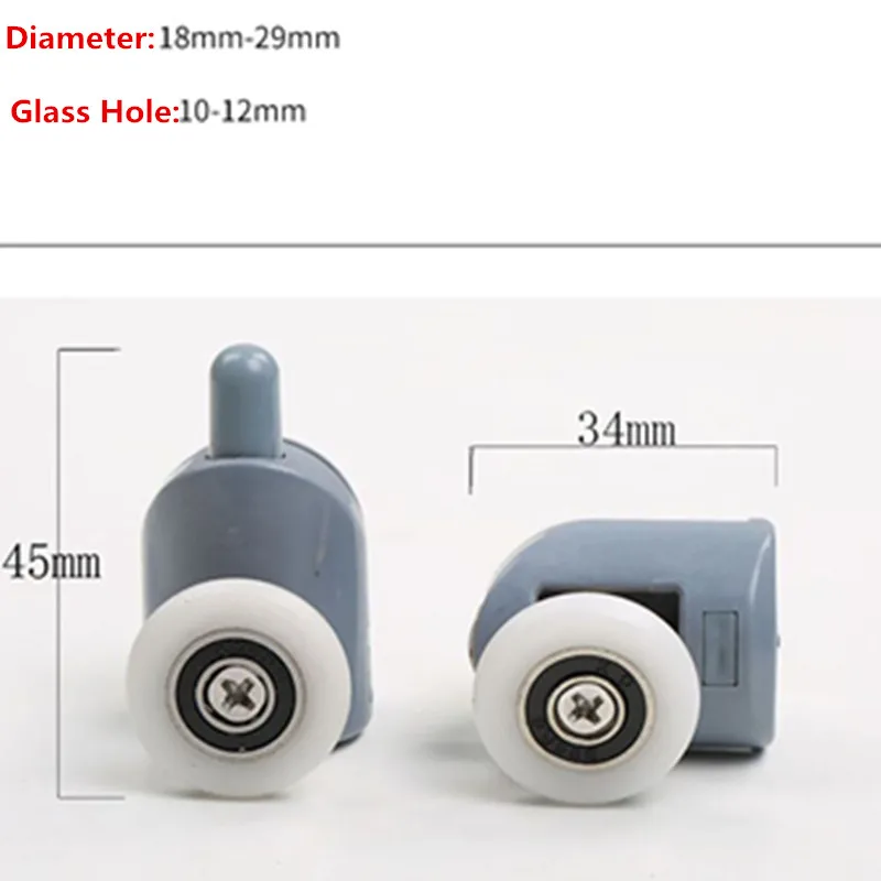 Набор из 8 роликов для одиночной душевой двери (4 верхних и 4 нижних ролика). Эти одиночные ролики для душевой двери подходят для стеклянных душевых дверей, расстояние от центра отверстия до края стекла составляет 18 мм. Диаметр колеса: 23 мм; Ширина колеса: 6 мм. Минимальный размер отверстия в стекле: 11 мм. Максимальная толщина стекла: 6 мм. Материал: пластик, нейлон, пластик, нейлон BS и нержавеющая сталь. Поставляется с винтовыми крышками. Пружинное действие может также соответствовать изогнутым душам. Разработан с гайкой и пластиковой крышкой.