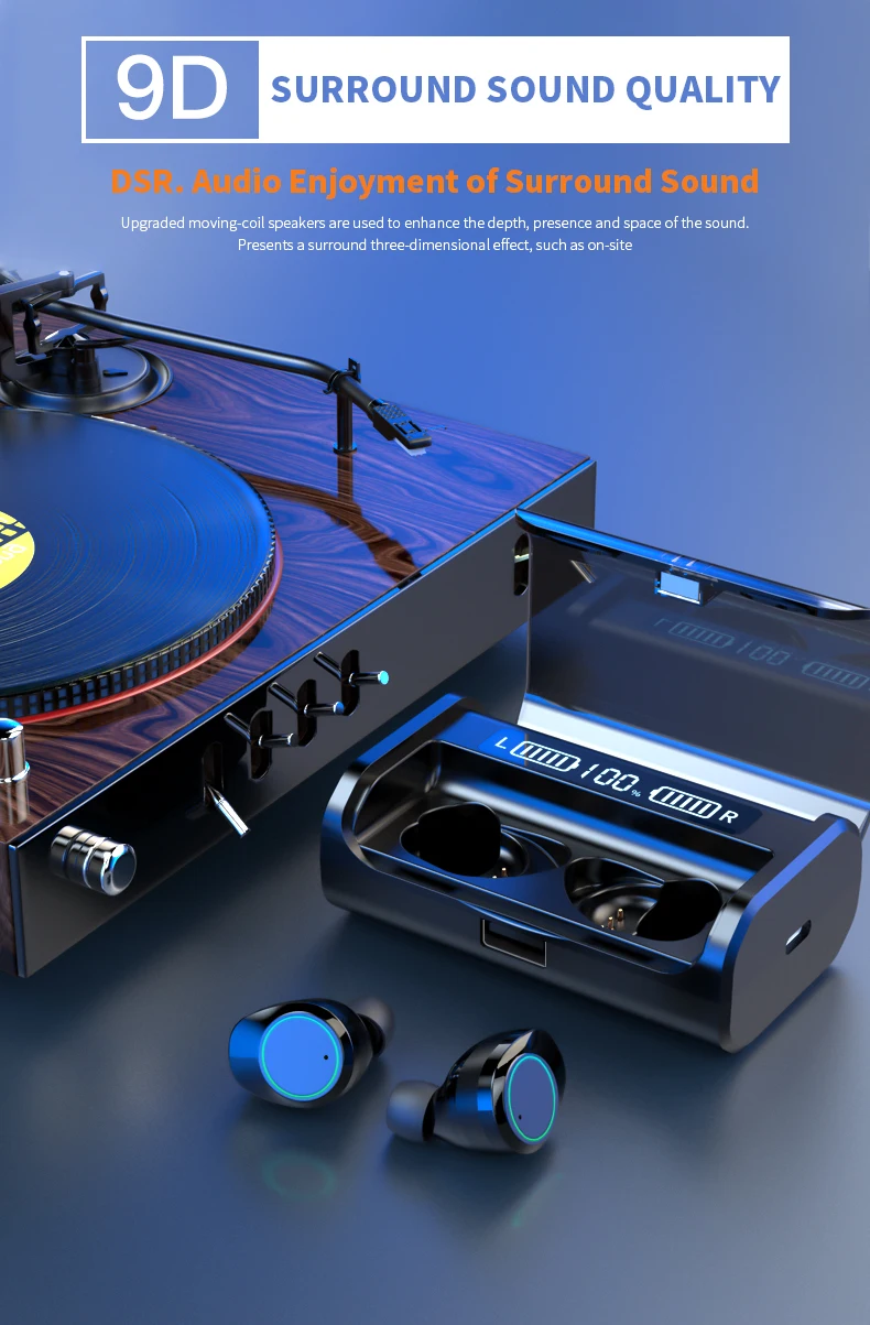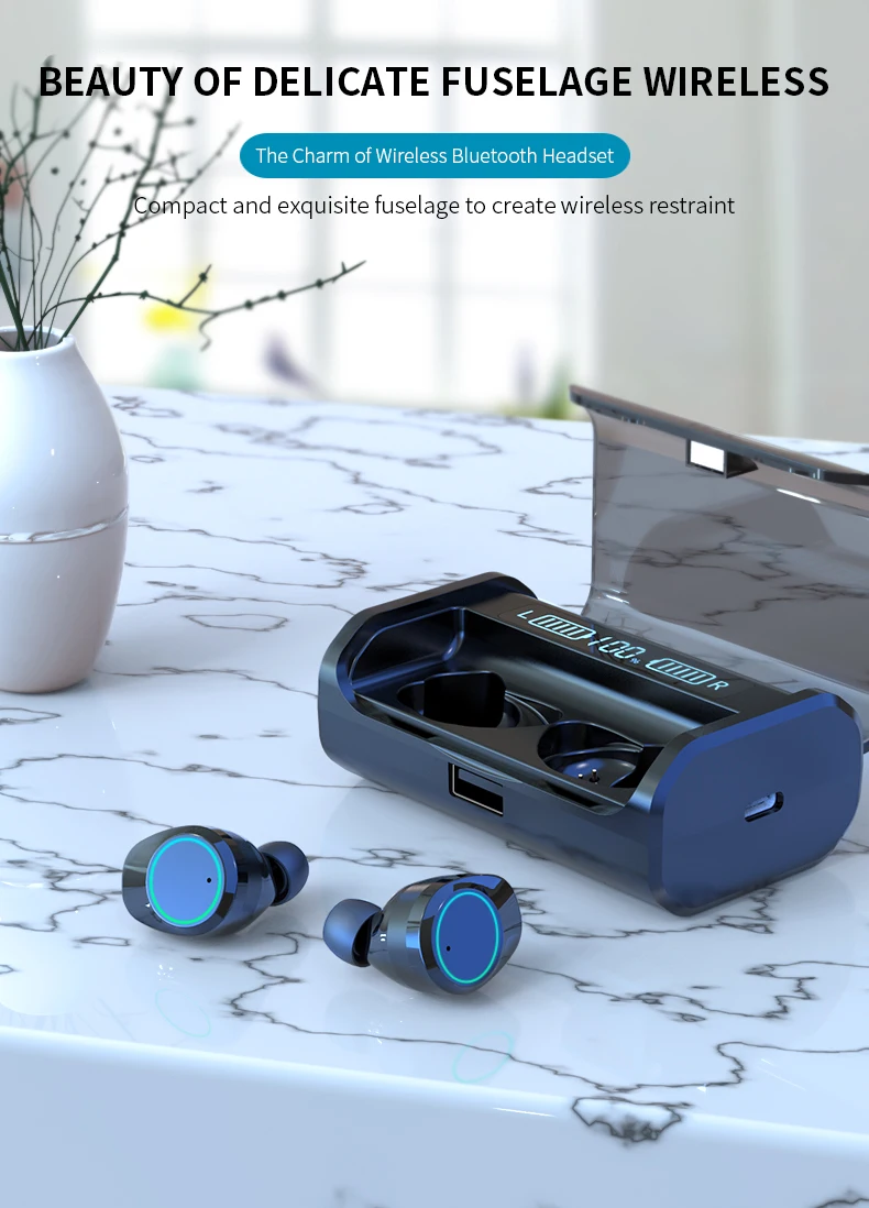 Особенности: 1. Обновление Bluetooth 5,0: с новым поколение беспроводной технологии шумоподавления, звуковой эффект является четким, в то время как соединение является простой и быстрой. Кроме того, сигнал более стабильный и передача быстрее. Поэтому вы можете наслаждаться музыкой. 2. Интеллектуальный цифровой дисплей: с индикатором smart LED power Display работает, вы можете не только интуитивно знать мощность, но и можете предсказать продолжительность плавания. 3. Качество звука HIFI 4. Зарядная кабина большой емкости: 4000 мА · ч 5. Водонепроницаемость: IPX6 Упаковка pureglas 2 х наушники 1 X зарядный чехол Зарядный кабель-1 шт.; Руководство пользователя-1 шт.;