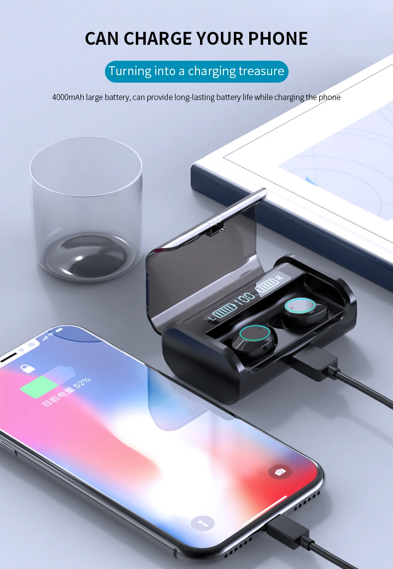 Новые TWS наушники, беспроводные наушники, Bluetooth 5,0, светодиодный дисплей питания, гарнитура с шумоподавлением, Hi-Fi, музыкальные наушники, 4000 мА/ч, с микрофоном