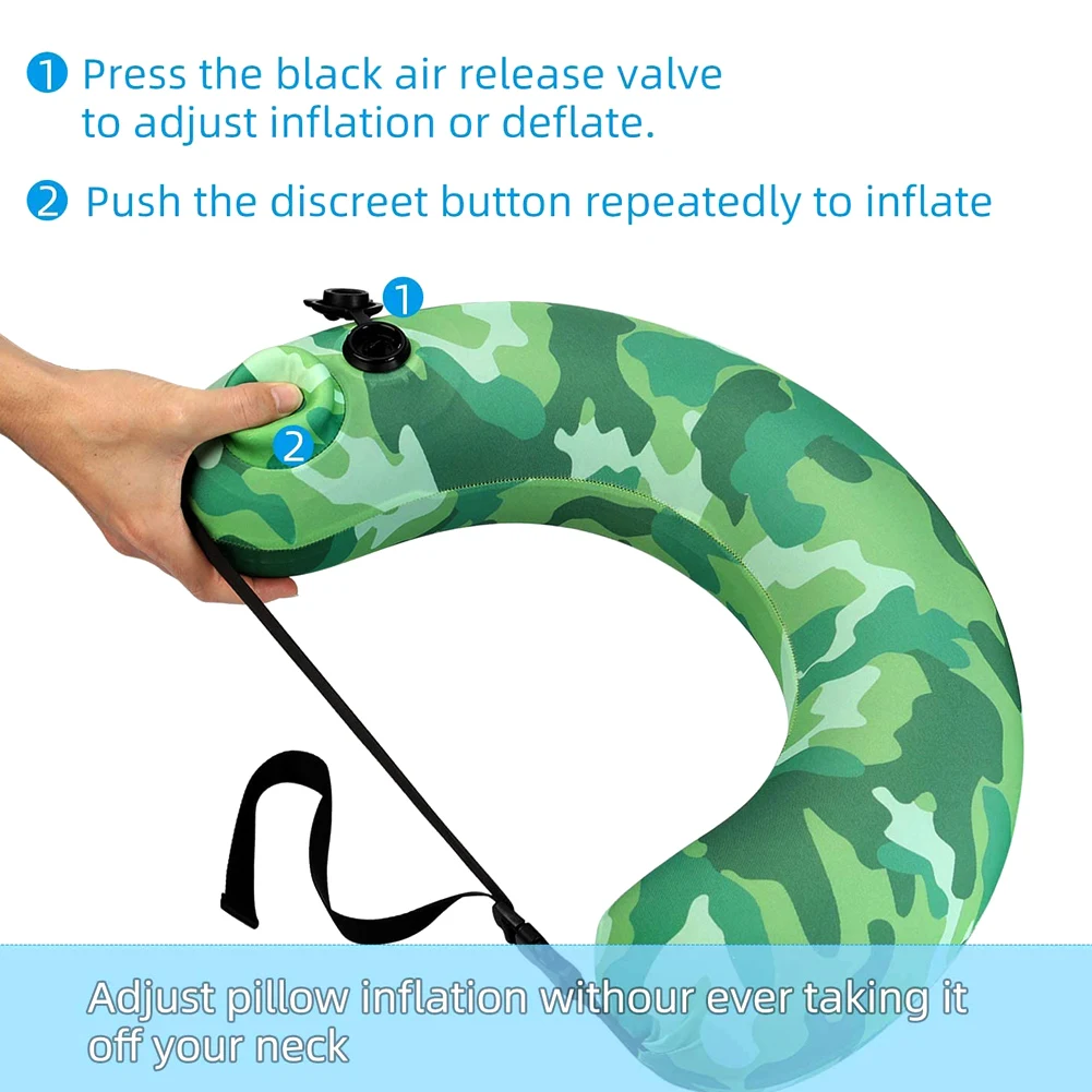 3. Портативный и удобный: надувная подушка для путешествий без выдувания. Просто нажмите на надувную кнопку вручную, а не надуйте рот или побеспокойтесь о том, чтобы взять туфли-лодочки. Для завершения требуется всего 30-60 с. Пожалуйста, выключите черные воздушные клапаны, нажмите несколько раз на выпуклой профиль бассейна поплавок, пока не достигнете ожидаемого надувания! Чтобы выпустить воздух, нажмите черные воздушные клапаны, вращаются на