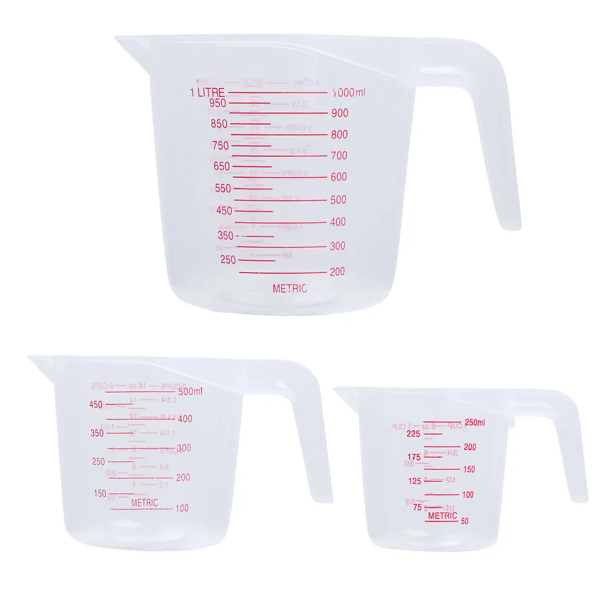 Прозрачный пластиковый мерный стакан 250/500/1000 мл, Штабелируемый мерный кувшин с угловым носиком для кухни, воды, молока, вина, измерительные инструменты