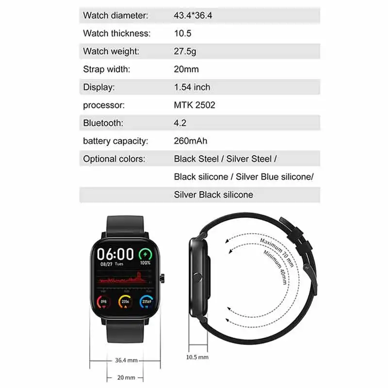 -Больше функций поддержки: будильник, календарь, напоминание о сидячем положении, дистанционное управление камерой, защита от потери, отображение погоды, управление музыкой.