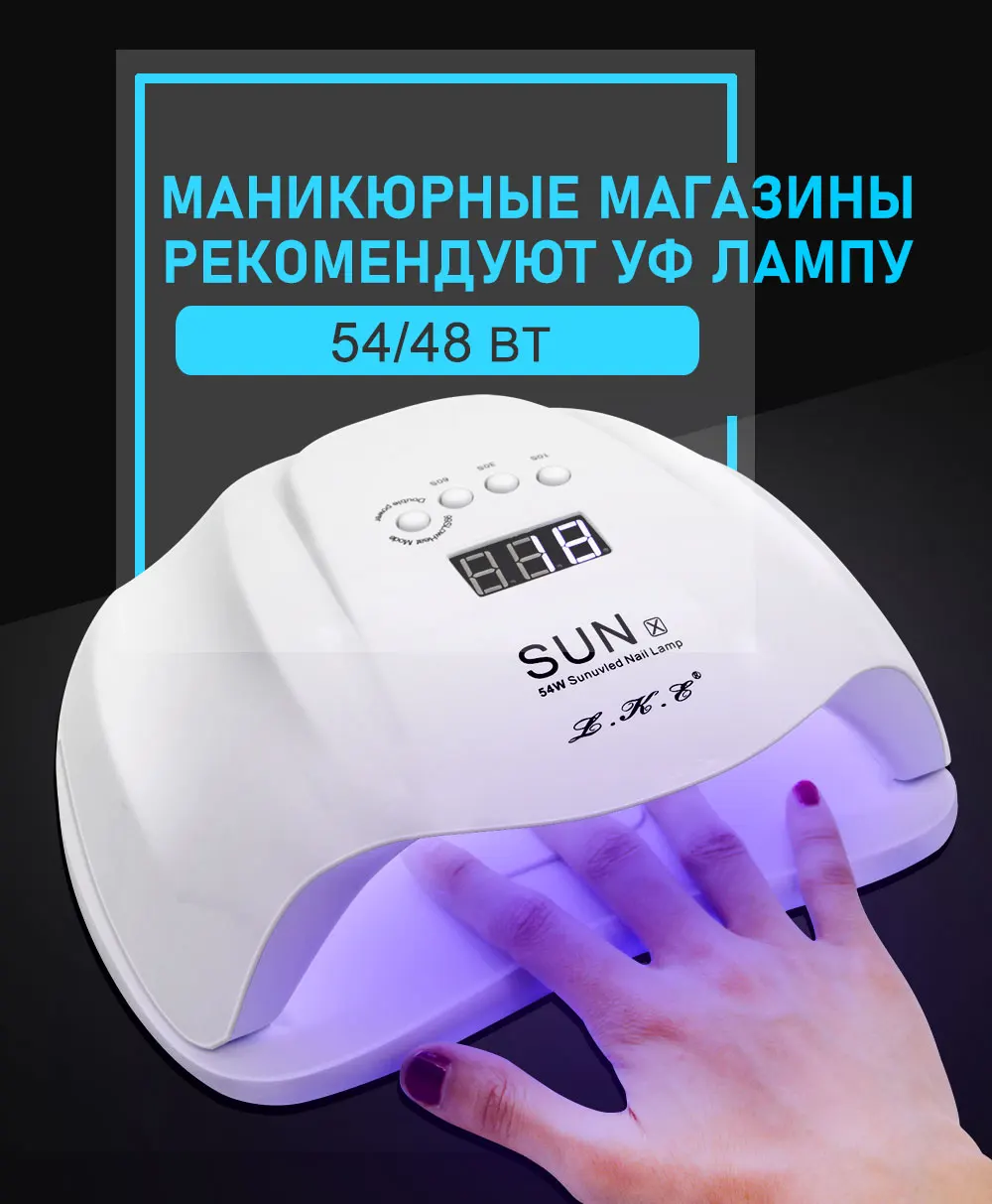 LKE 54W Сушилка для ногтей SUN X UV LED Лампа для ногтей для всех гель лак для ногтей с автоматическим сенсорным ЖК-дисплеем 4 Таймер лампы искусства ногтя