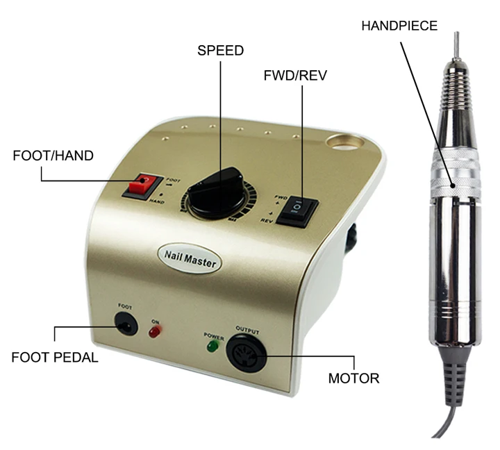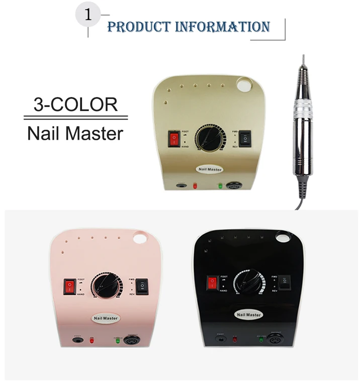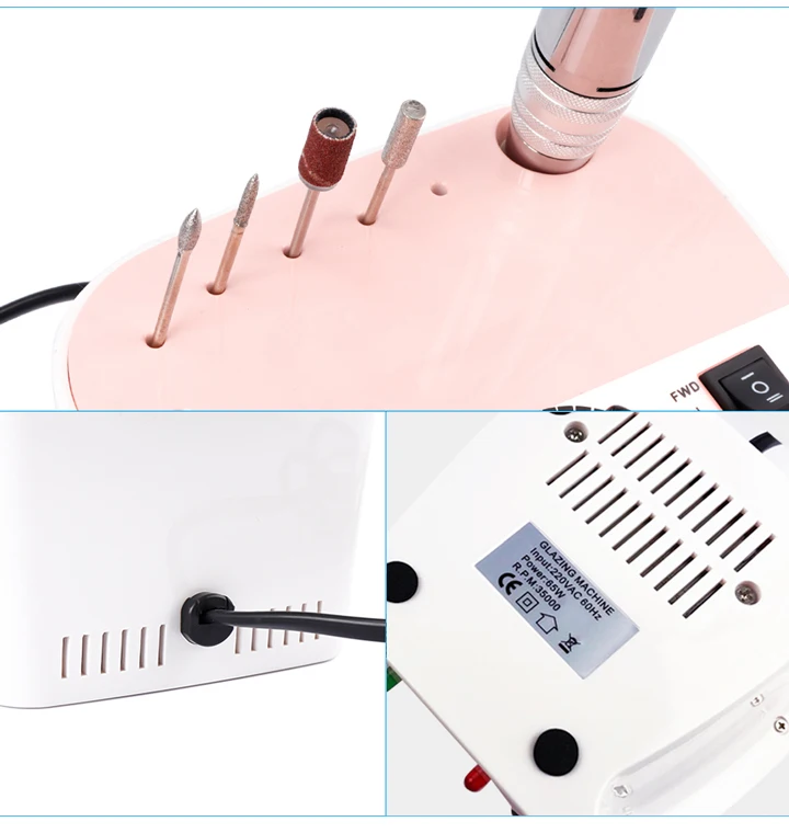 Тип: Профессиональная машина для сверления ногтей Номер модели: JM304 Размер продукта: 9 * 14,5 * 13 см Продукты G.W: 1200 г Идеальная скорость: 0-35000RPM Происхождение: Гуанчжоу, Китай Сертификат: CE Вход: 220 В, 60 Гц Цвет: розовый, черный, черный Мощность: 65 Вт Функция: Высококачественная машина для маникюра Особенность: Высокая мощность Обратное направление Прямое направление Стабильная производительность Защита от перегрузки