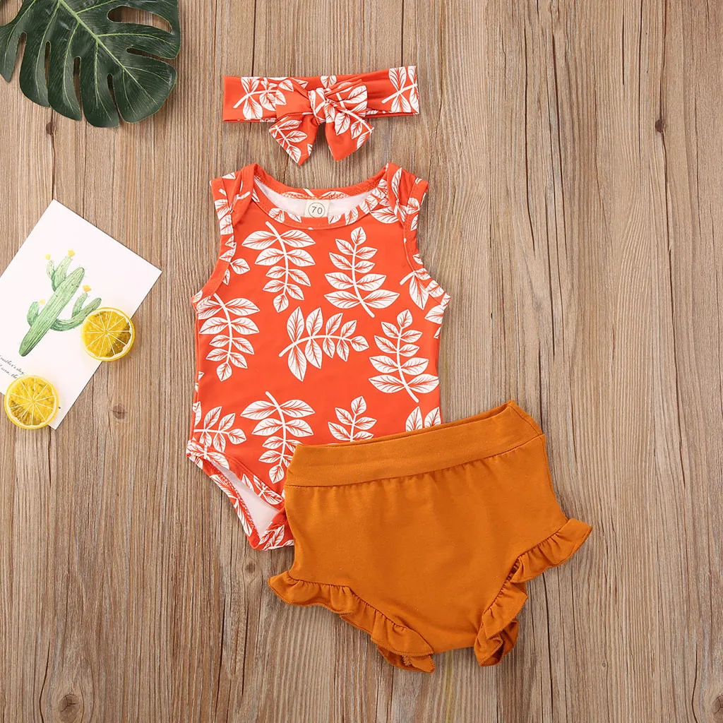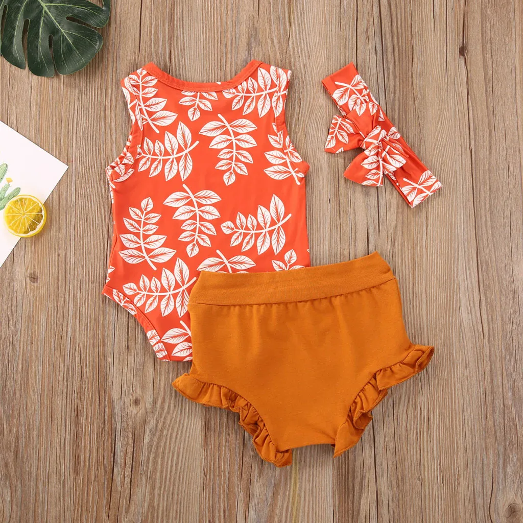 Одежда для новорожденных мальчиков и девочек комбинезон без рукавов с цветочной вышивкой комплект с шортами