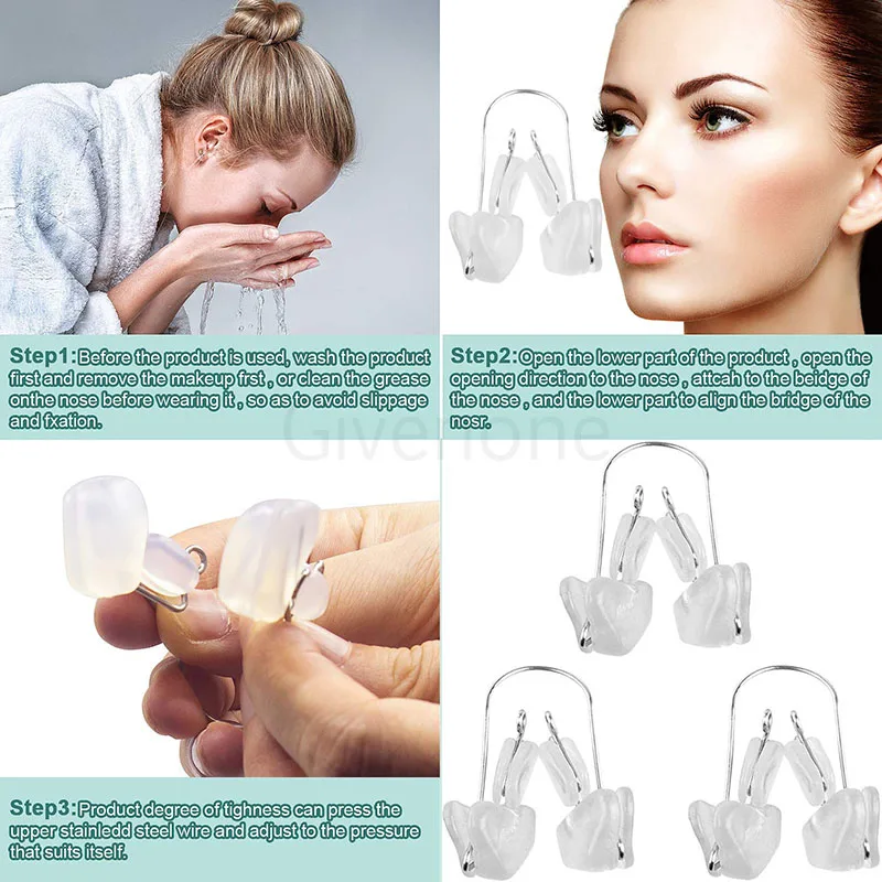 Шаг 1: прежде чем использовать продукт, сначала промойте продукт и удалите макияж frst или очистите смазку на носу, прежде чем носить его, чтобы избежать проскальзывания и fxation