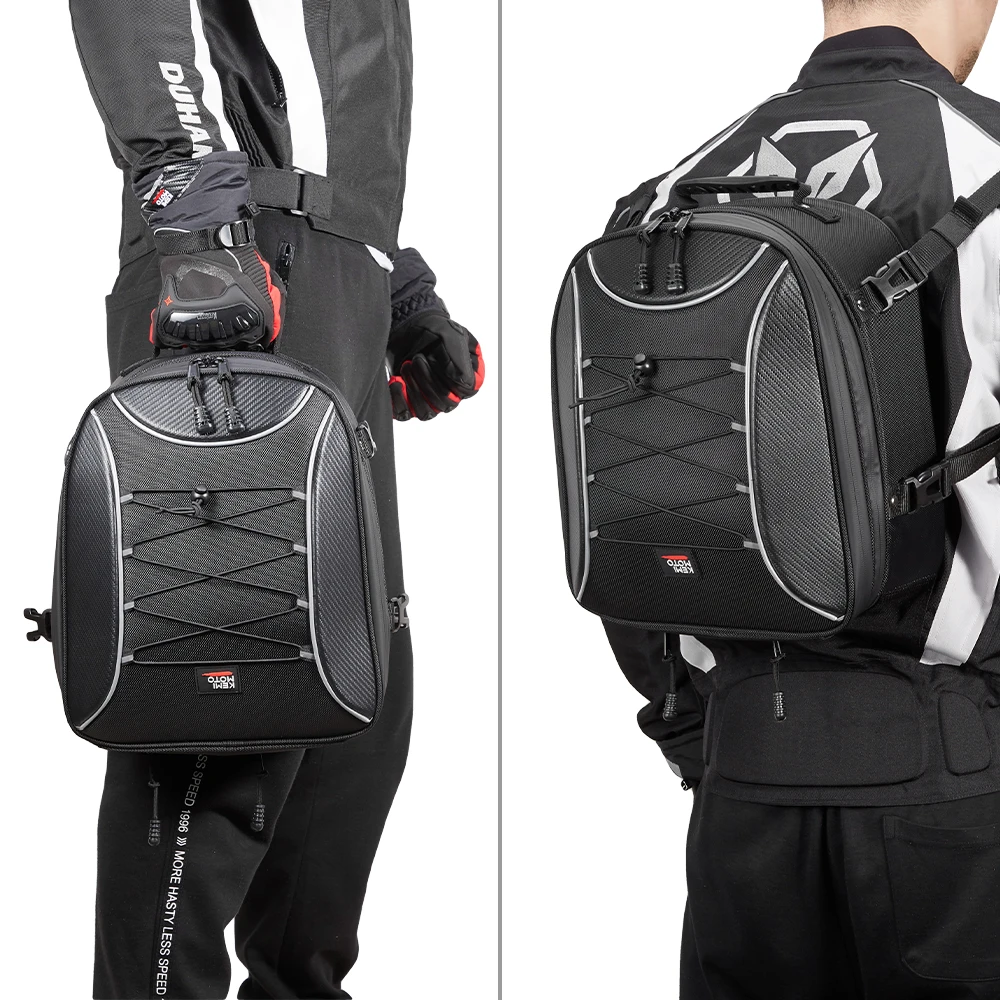 1.34L расширяемая емкость. 2. Многофункциональная сумка и рюкзак для легкого движения. 3. Блестящий дождевик, полностью водонепроницаемый мешок с дождевой крышкой, чтобы ваш багаж не промокал. 4. Практичность и универсальность. 5. Расширяемая большая емкость 34л для хранения багажа, камеры и может хранить полный шлем, половину шлема, гоночный шлем. 6. Универсальная стильная сумка, рюкзак универсальный и стильный дизайн со светоотражающими полосками. Это также украшение для вашего мотоцикла.