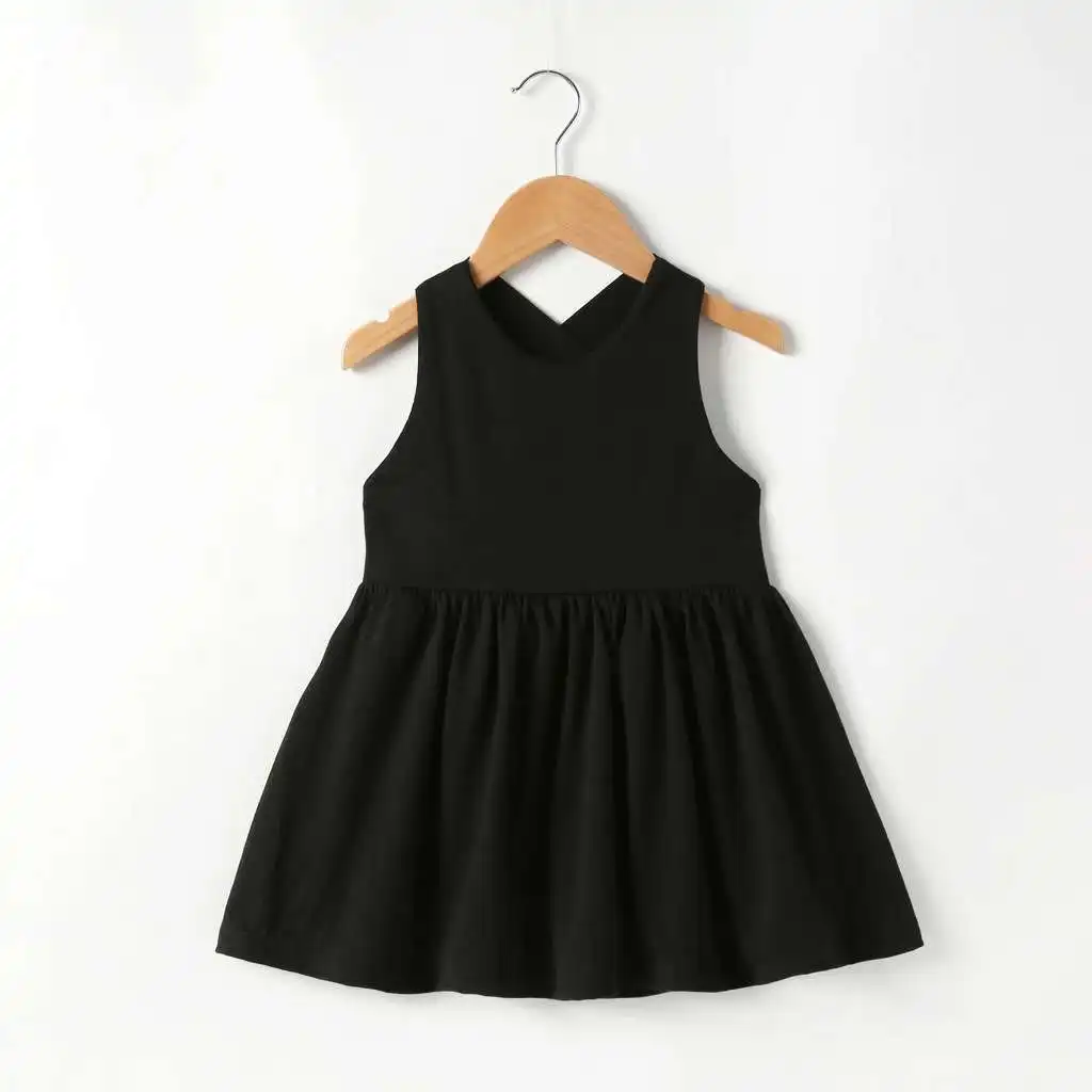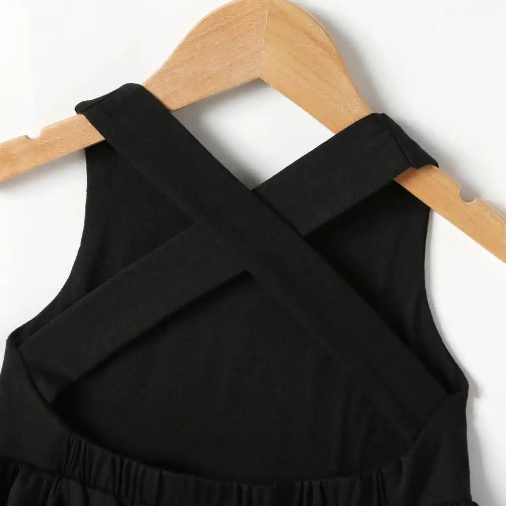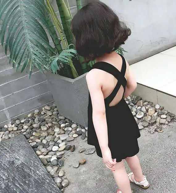 2020 европейские и американские летние Новинки для девочек черное платье без бретелек с низким вырезом на спине платье принцессы для девочек