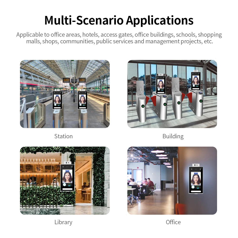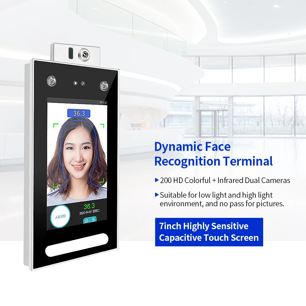 DT-10W относится к 7 дюймов измерения температуры с функцией распознавания лиц терминал, который позволяет измерить температуру тела в тех случаях, когда люди проходит контроля доступа и сигнал тревоги в случае аномальной температуры тела. Подходит для офисных помещений, отелей, Ворот Доступа, офисных зданий, школ, торговых центров, магазинов, общественных служб и проектов управления и т. Д.