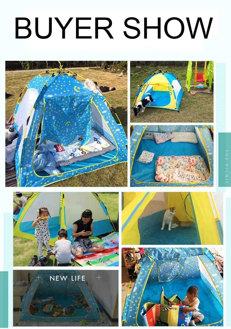 1. Уличное и Домашнее использование, маленький и изысканный, готов к использованию 2. Легко снимать и закрывать, новая автоматическая конструкция тягового устройства, безопасная и быстрая сборка 3. Веселье, комната игрушек, игровая комната, игровой дом, счастливый мир детей 4. Без молнии, безопасный и удобный