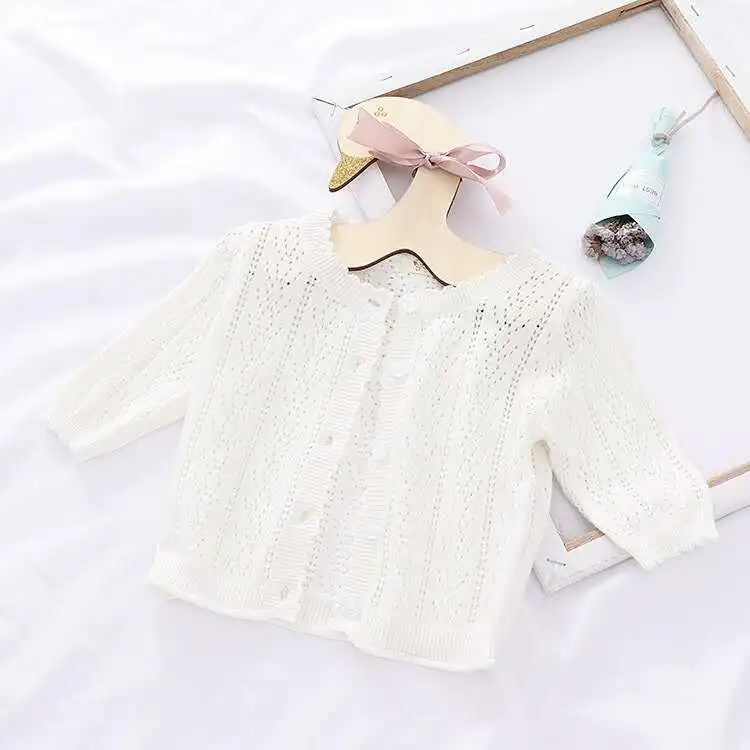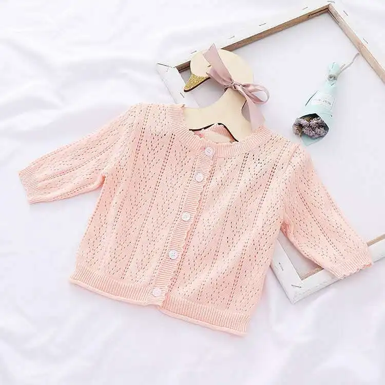 Ins/Детский кардиган; Тонкое пальто в Корейском стиле для маленьких принцесс; Вязанный свитер; Солнцезащитная рубашка для кондиционирования воздуха; Сезон весна-лето; Для детей
