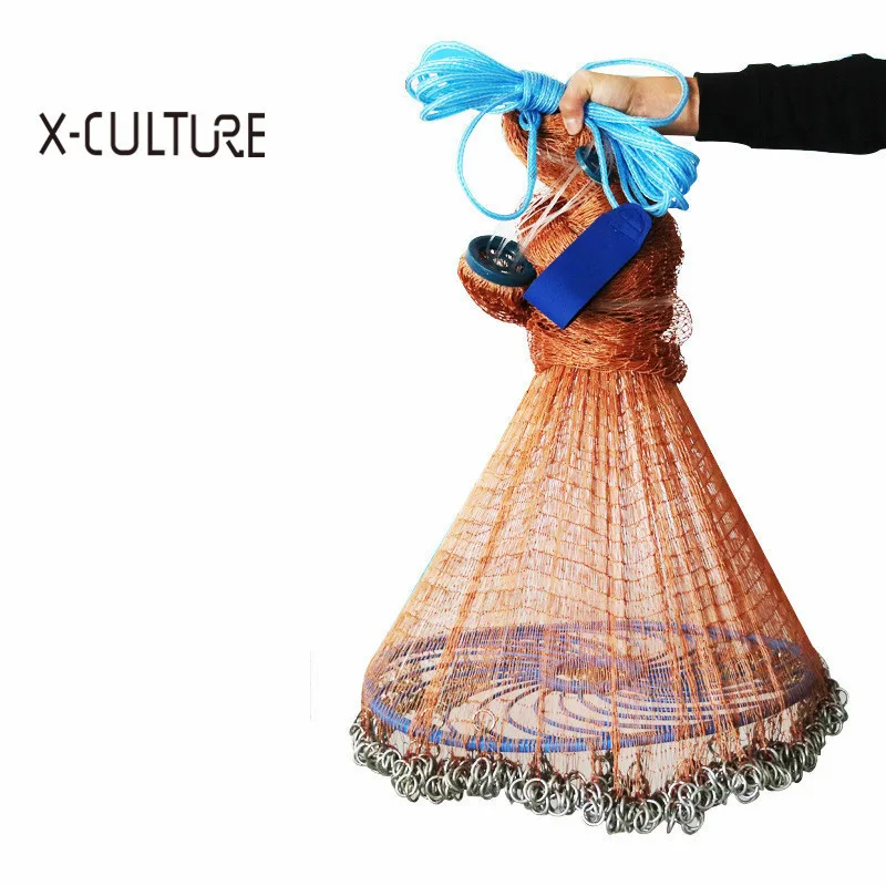 XC ручная литейная рыболовная сеть с цепными грузилами, летающий диск, Моноволокно, ручная рыболовная сеть, глубина 210 240 270 300 360 см